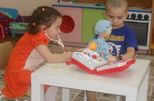 Сегодня наши малыши на какое-то время превратились в настоящих Айболитов. Они лечили, попутно изучая названия медицинских инструметов.