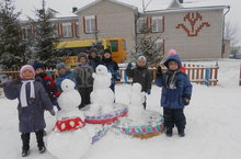 Дети старшей и подготовительной групп с удовольствием гуляют, лепят замечательных снеговиков.
