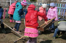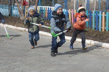 Наступила весна, ярко светит солнышко и сидеть весь день в закрытом помещении кажется просто невозможным. Ребята с удовольствием проводят время на свежем воздухе: играют в подвижные игры, повторяют разученные ранее танцы. Младшая разновозрастная группа не отстает от старших товарищей. Сегодня малыши на улице наблюдали за птицами, водили хоровод, играли в догонялки и прятки.
