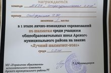 5 января в Дворце школьников г.Арска состоялись лично-командные соревнования по шахматам среди учащихся общеобразовательных школ района звание "Лучший шахматист-2021", где наша команда под руководством опытного тренера, учителя нашей школы Сайфулиной Говхэр Юнусовны заняла 1 место. От всей души поздравляем и желаем новых побед в новом году.
