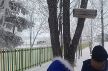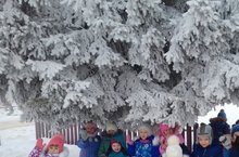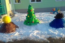 Бүген бездә чыршы бәйрәме булды. Кыш бабай белән кар кызы килде.