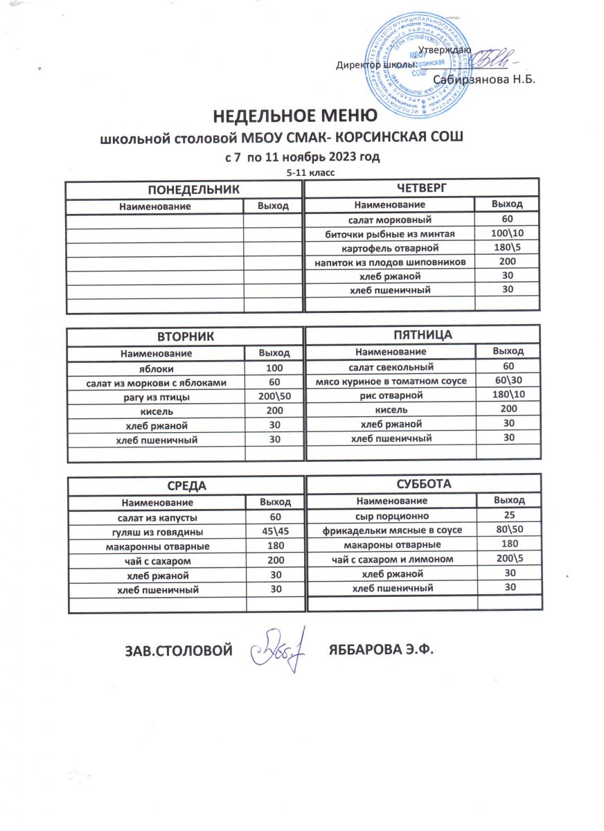 Меню на 7 ноября-11 ноября 2023 года для 5-11 классов