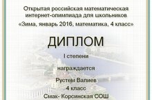 19-21 гыйнвар көннәрендә башлангыч сыйныф укучылары " Кыш, гыйнвар 2016, математика" исемле ачык математик -олимпиадаларда катнаштылар. Укучыларыбызны уңышлары белән котлыйбыз.