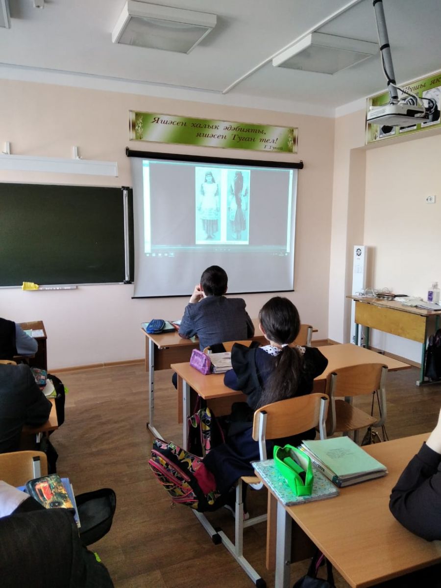 Сыйныф сәгате "Татар халкының милли киемнәре"һәм бизәнү әйберләре.