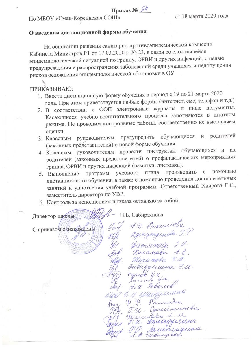 Приказ о переходе на обучение с использованием дистанционных технологий