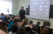 Бүген мәктәпкә укучылар белән очрашуга Казан шәһәреннән ГИБДД майоры Шарафиев Динар Рифатович килде. Ул юл йөрү кагыйдәләре турында сөйләшү алып барды. Юлларда һәрчак игътибарлы булыгыз, юл кагыйдәләрен төгәл үтәгез, кечкенәдән үк юл билгеләрен өйрәнегез дип чакырды. Юл йөрү кагыйдәләрен бозган очракта төрле күңелсез хәлләр килеп чыгуы турында мультфильм күрсәтте. Очрашу ахырында һәр балага яктырткыч ленталар бүләк итте.