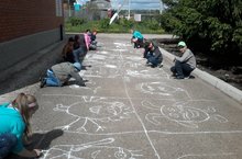 Лагерьның 4 эш көне. Бүген без балалар белән "Күңелле балачак" темасына асфальтта рәсем ясау конкурсы үткәрдек. Иң оста рәсем ясаучыларыбыз Низаметдинов Кәрим һәм Сибгатуллин Адель булдылар. Молодцы егетләр!