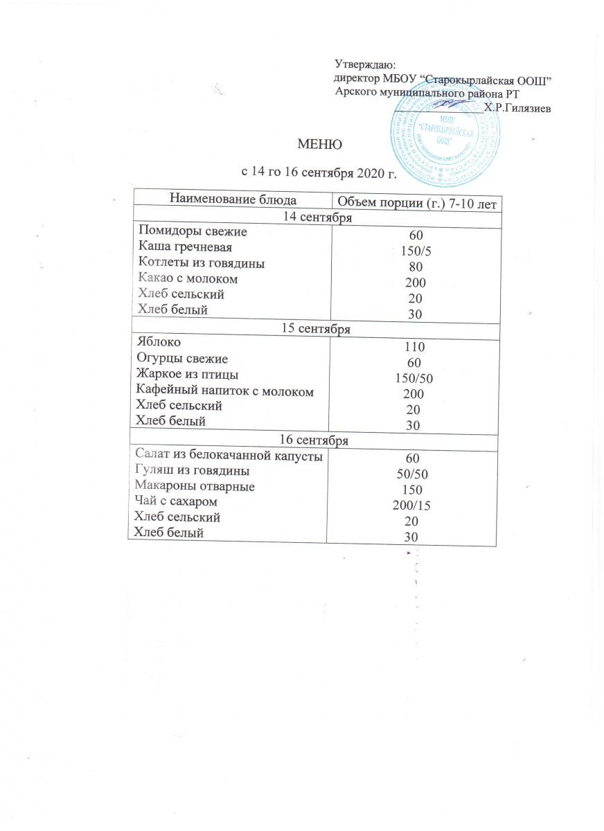Меню со 2 по 4 сентября 2021 г. (5-9 классы)