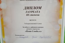 Поздравляем нашу воспитанницу Алину занявшую призовое место в районном конкурсе детского творчества среди воспитанников дошкольных образовательных учреждений "Нәни Сөмбелә". Желаем не останавливаться на достигнутом, всегда двигаться вперед и покорять любые вершины!