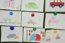 Сегодня дети учились рисовать легковой транспорт, передавать особенности строения машины. Закрепили навыки закрашивания.