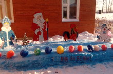 Күчтәнәчләр тутырып.Кулларында боз таягы