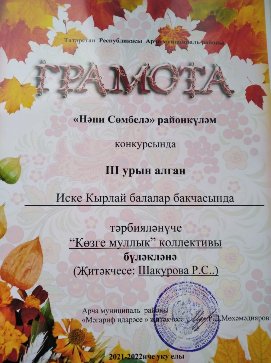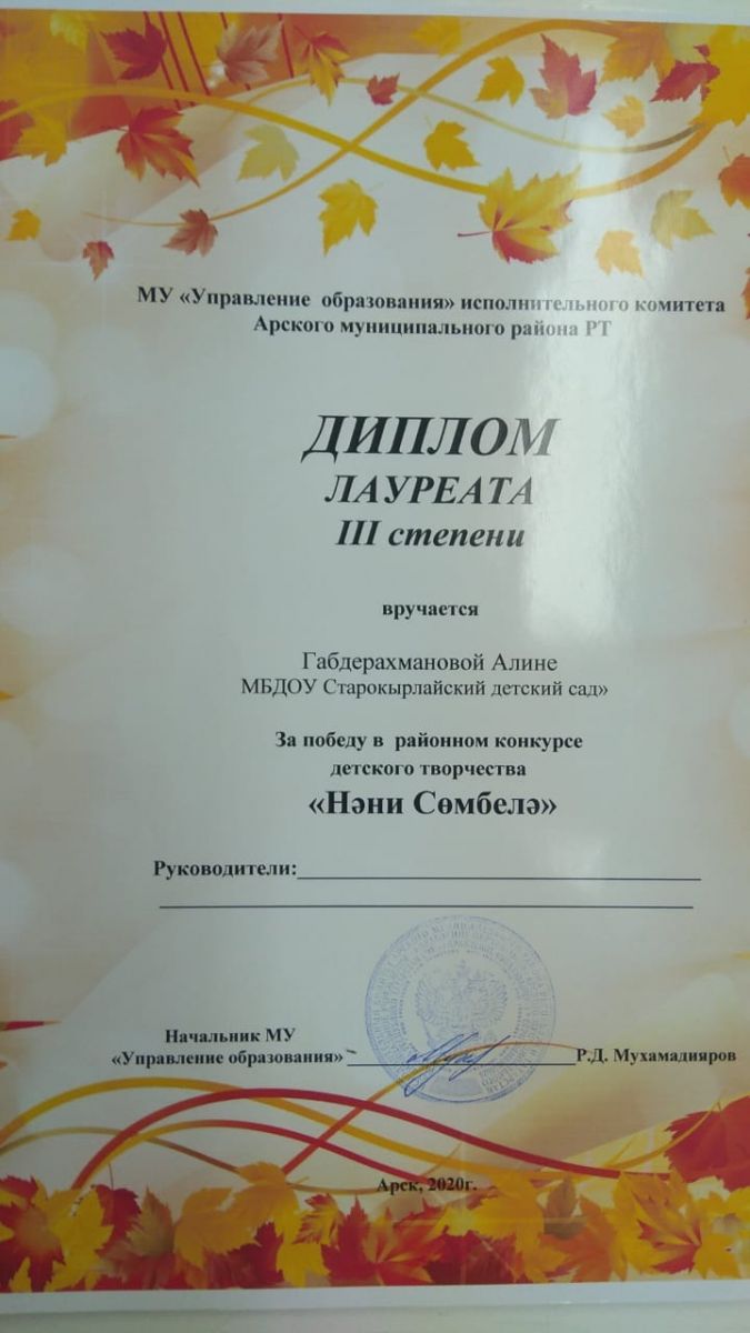 Муниципальное бюджетное дошкольное образовательное учреждение «Старокырлайский детский сад Арского муниципального района РТ»