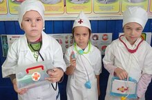Провели сюжетно-ролевую игру с детьми: «Больница» . Такие игры развивают внимание и целостность восприятий детей обогащают представления детей о профессиях.Помогают формировать у детей умение принимать на себя игровую роль (доктор, пациент), побуждать детей обыгрывать сюжет знакомой игры «Больница», используя знакомые медицинские инструменты (игрушечные), также способствовать возникновению ролевого диалога.
