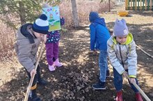 Бүген без коллектив белән кабат өмәгә чыктык. Бакча территориясендә кар әле күп булганлыктан без бөтен көчне кар таратуга куйдык.