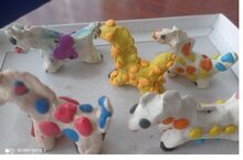 Сегодня познакомились с понятием «пластилинография», с приемами и способами изображения.Организовали с детьми практическую деятельность по росписи пластилином дымковской игрушки.