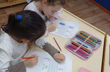 Балалар буген математика шөгылендә 5 саны белән таныштылар. Сөйләмдә башта,соңрак кебек сүз төшенчәләрен куллануны ныгыттылар Тәртип саннарын, предметларның санын чагыштырырга өйрәтүне дәвам иттеләр.Ике кечерәк саннан зуррак сан төзергә өйрәнделәр.