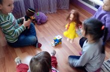Когда дети из подготовительной и старшей группы на занятиях, наши малыши из второй младшей группы заняты игрой. Потому что игра - это не только удовольствие и радость для ребенка, что само по себе очень важно. В игре ребенок закрепляет навыки, которыми он недавно овладел, развивает важнейшие стороны своей психики. Дети в игре чувствуют себя самостоятельными - по своему желанию общаются со сверстниками, реализуют и углубляют свои знания и умения. Играя, дети познают окружающий мир, изучают цвета, форму, свойства материала и пространства, знакомятся с растениями, животными, адаптируются к многообразию человеческих отношений. В игре у ребенка раскрываются такие его возможности, которые еще не реализуются в обыденной жизни. Это похоже на взгляд в будущее. В игре ребенок бывает сильнее, добрее, выносливее, сообразительнее, чем во многих других ситуациях. И это естественно. Ребенок должен соотносить свои желания с желаниями других детей, иначе он просто не будет принят в игру. Игра развивает у ребенка коммуникативные способности, он должен научиться устанавливать со сверстниками определенные взаимоотношения. Принимая ту или иную роль, ребенок усваивает и необходимые для исполнения этой роли нормы поведения, а не просто ведет себя так, как захотелось в данную минуту.