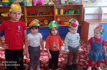 Бүген сөйләм үстерү шөгылендә балаларның көзге байлык, көз күчтәнәчләре турындагы белемнәрен ныгыттык. Сөмбелэ бәйрәме- көзге уңыш бәйрәме уңаеннан шигырьләр, жырлар, табышмаклар өйрәнүне дәвам иттек. Жырлы-биюле уеннар уйнадык.