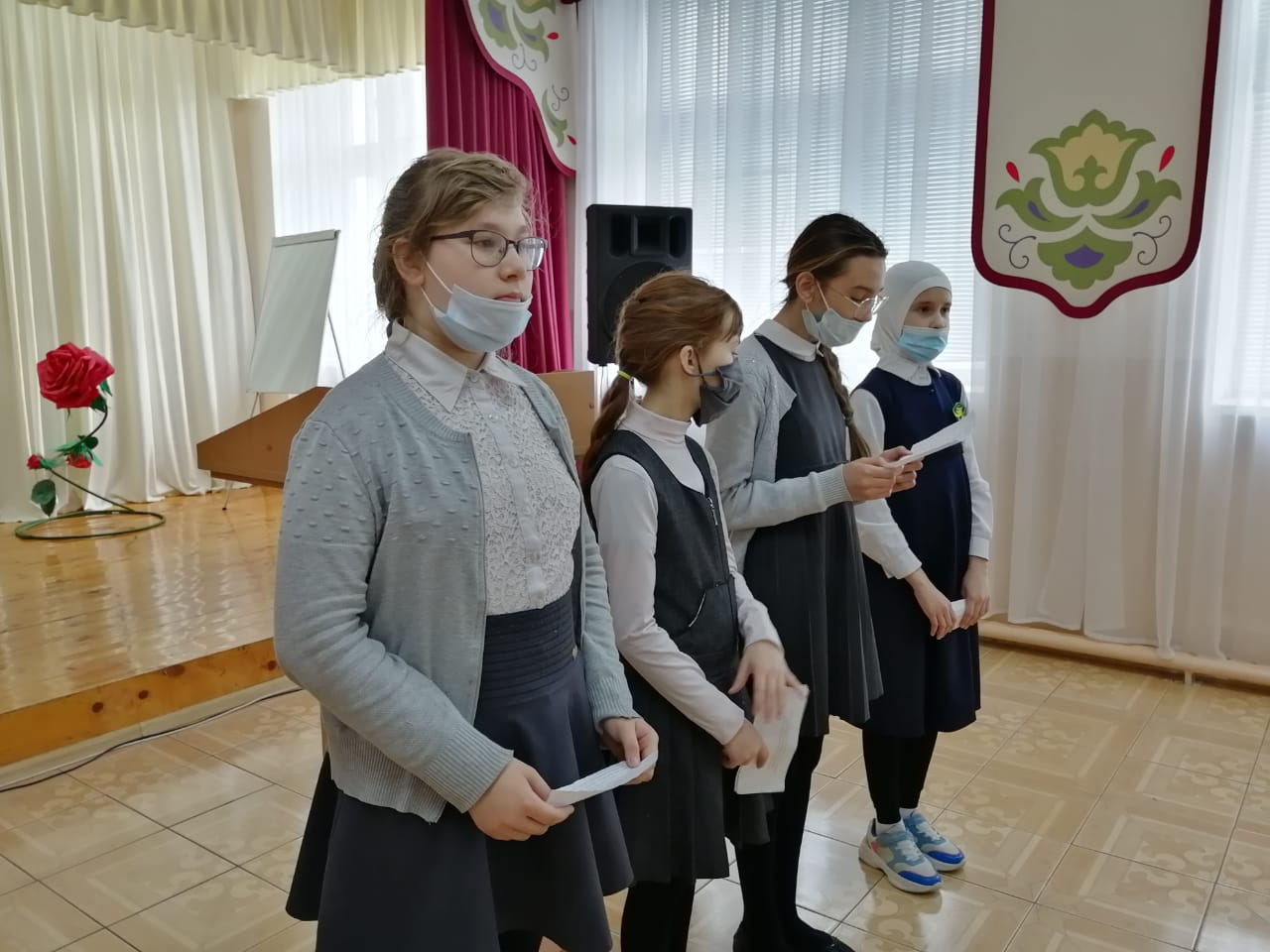 Бүген 5-7 сыйныф укучылары үз эшләрен якладылар. Традицион тикшеренү эшләреннән тыш, бик күп иҗат эшләре тәкъдим ителде: чигү, тегү, аппликация һәм хәтта чын мультфильм. Балаларның нәтиҗәләре бик тәэсирләндерә һәм чиксез сөендерә