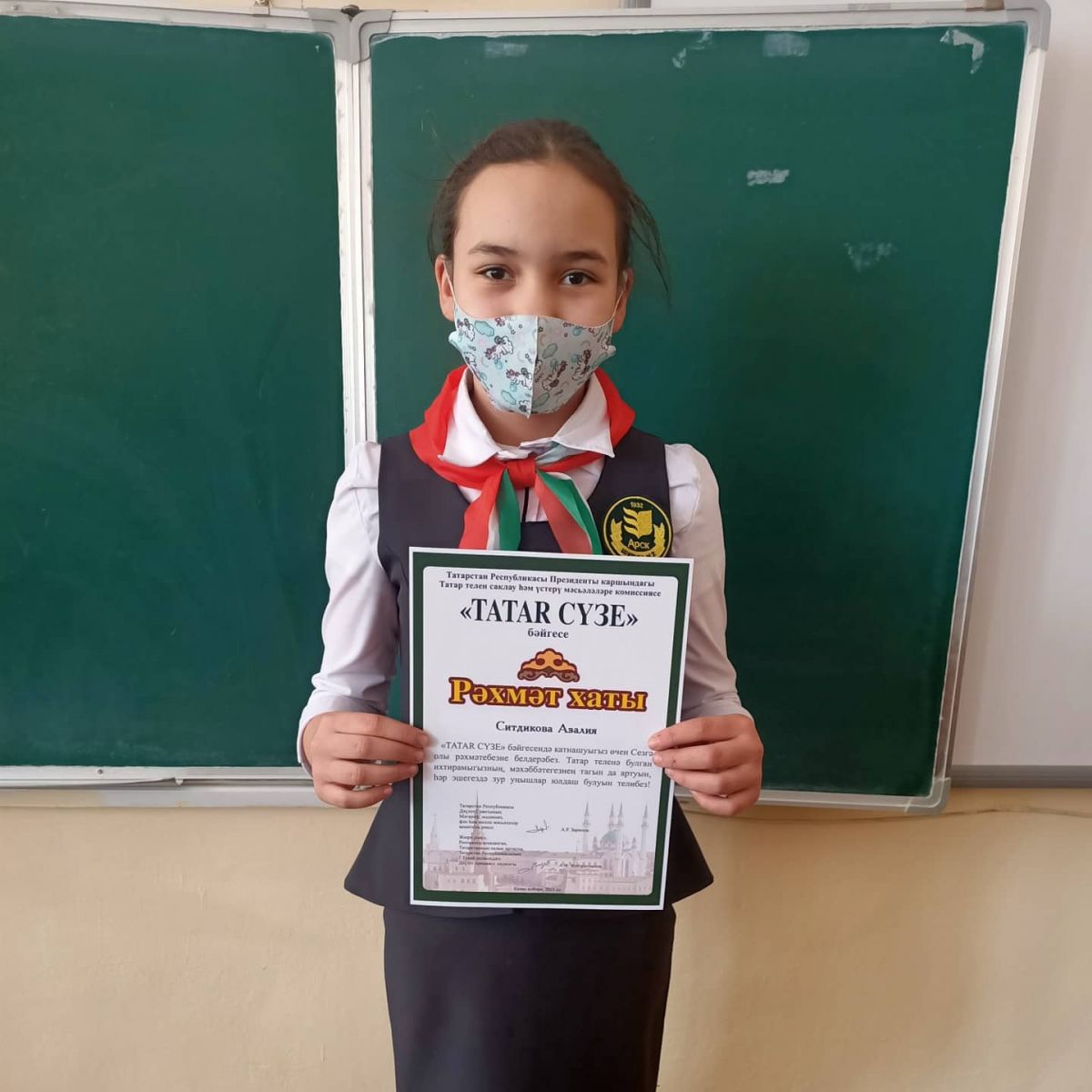 Ситдикова А. ученица 4 класса получила благодарственное письмо за участие в конкурсе "Татар сузе" и стала победителем в конкурсе "Письмо Деду Морозу".4 нче сыйныф укучысы Ситдыйкова А. "Татар сүзе" конкурсында катнашкан өчен рәхмәт хаты алды һәм "Кыш Бабайга хат"конкурсында җиңүче булды.