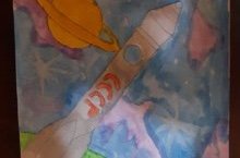 В школе идет конкурс рисунков ко Дню космонавтики.