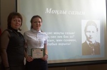 Татар теле атналыгы 22.04.2014 Бүген, 22 нче апрель көнне, "Казан арты " тарих-этнография музеенда "Моңлы сазым" исемле әдәби-музыкаль кичә узды. Бу кичәдә безнең мәктәптән 8нче А сыйныфы укучысы Шәһимуллина Гүзәл Фәнис кызы (укытучысы Мөбәрәкшина Гөлнара Рифат кызы) катнашып, "Тукай иҗатына багышланган шигырьләр "номинациясендә дипломга лаек булды.Гүзәлне һәм укытучысы Гөлнара Рифат кызын котлыйбыз, уңышлар телибез.