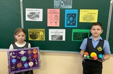 Ребята не остались в стороне от чествования космонавтов и под руководством своих классных руководителей организовали выставку, посвящённую Дню космонавтики.