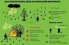 Если Вы находитесь в лесу, то укройтесь на низкорослом участке леса. Не укрывайтесь вблизи высоких деревьев, особенно сосен, дубов и тополей.