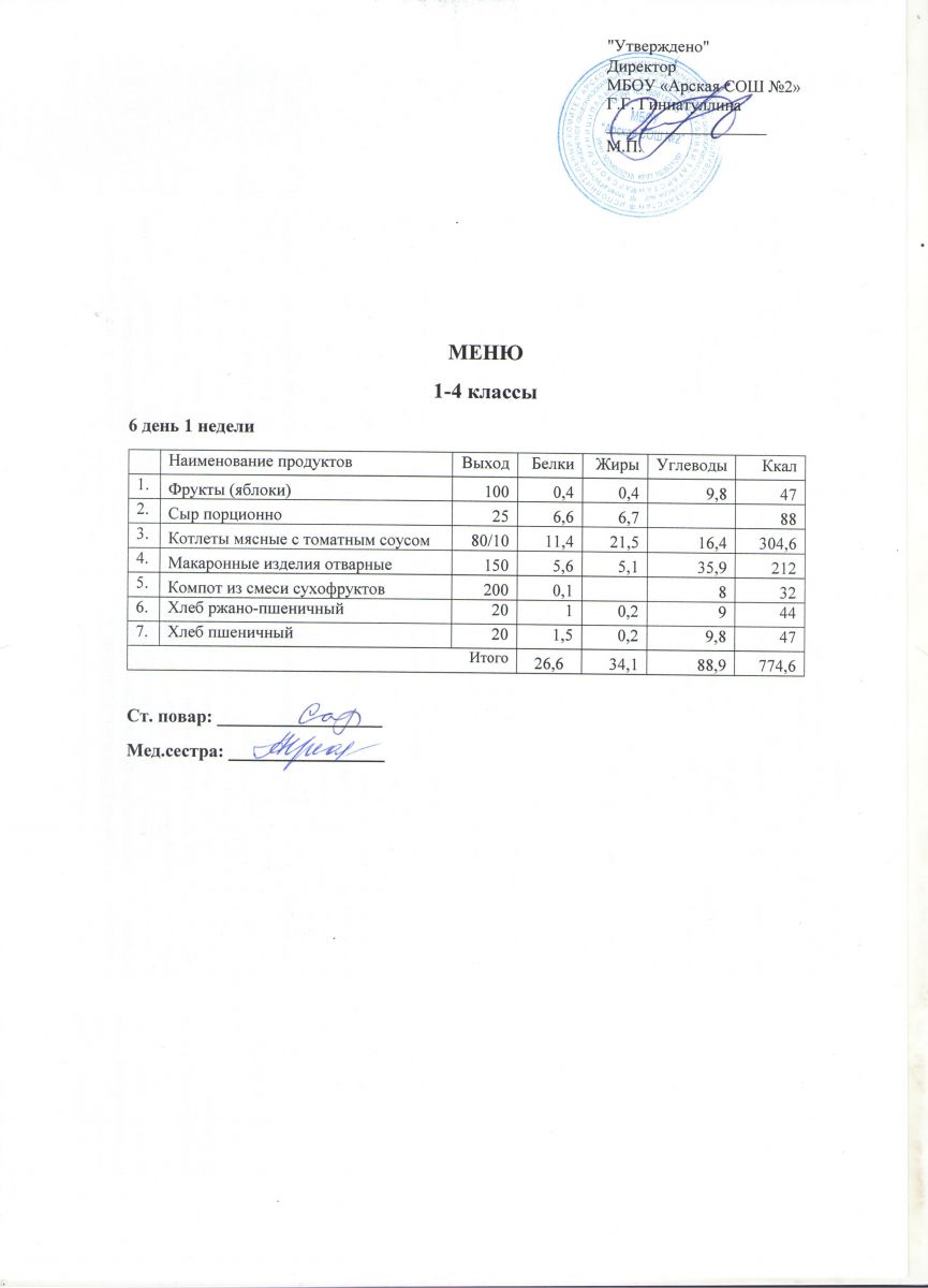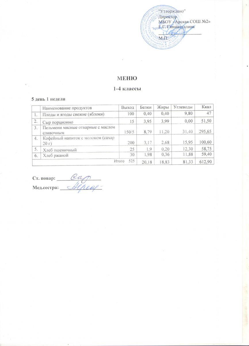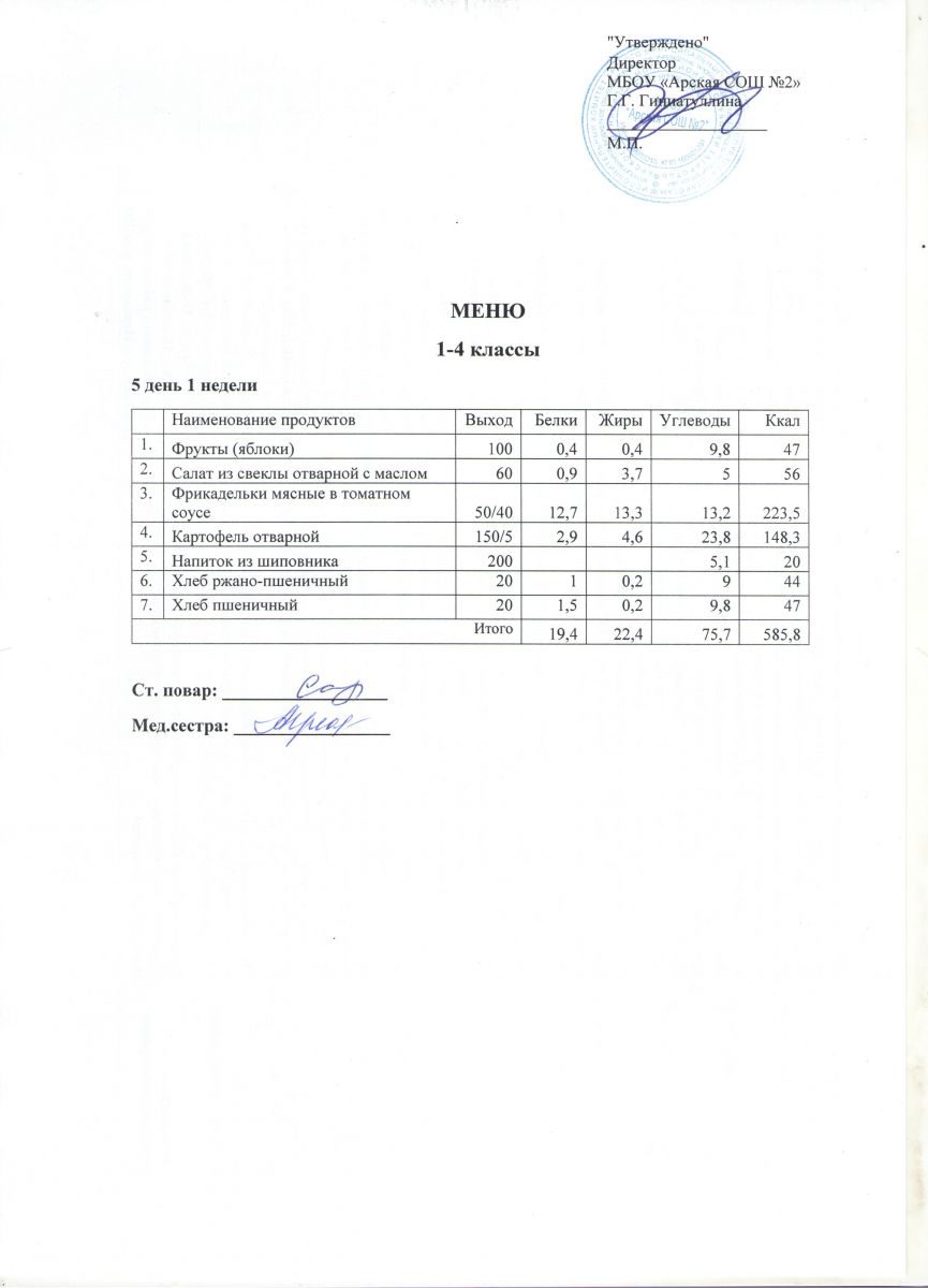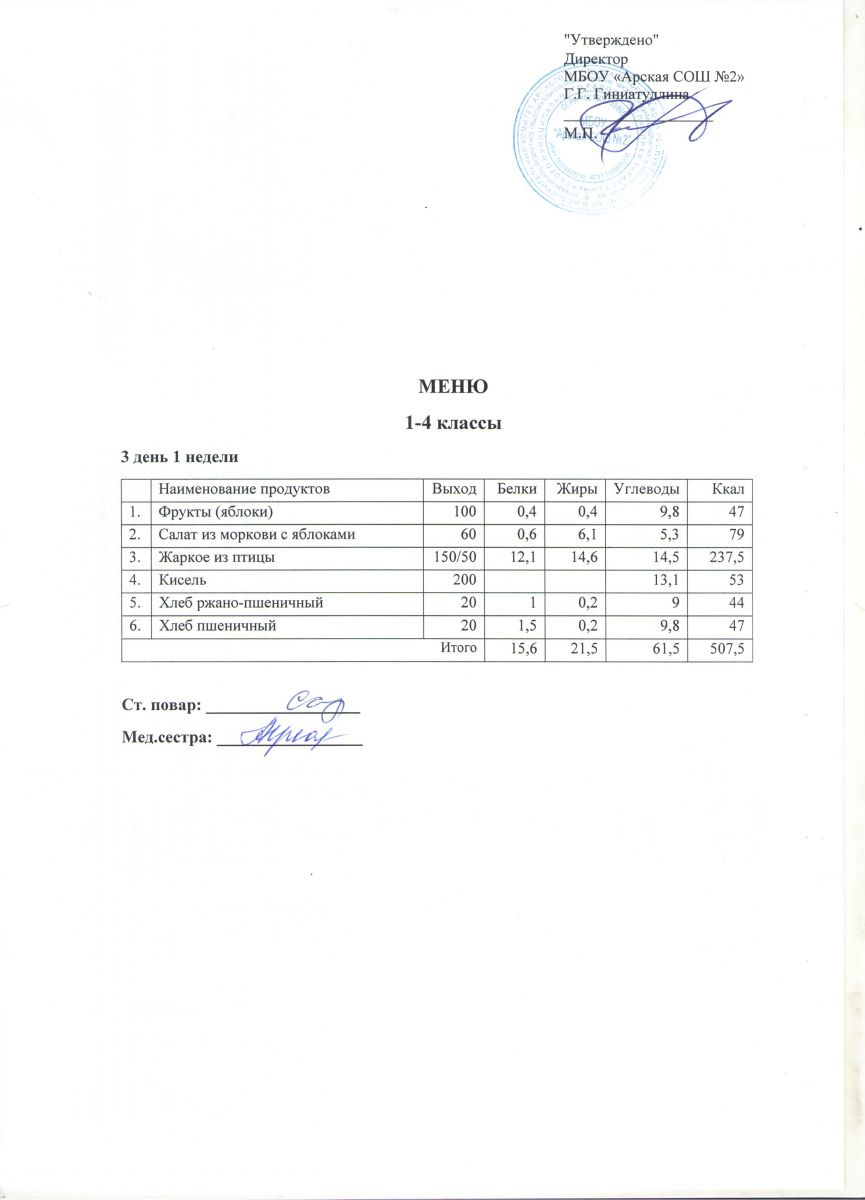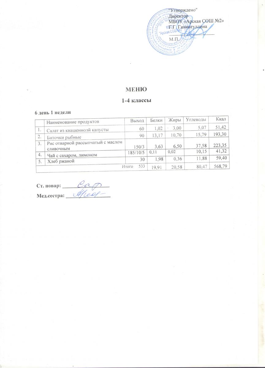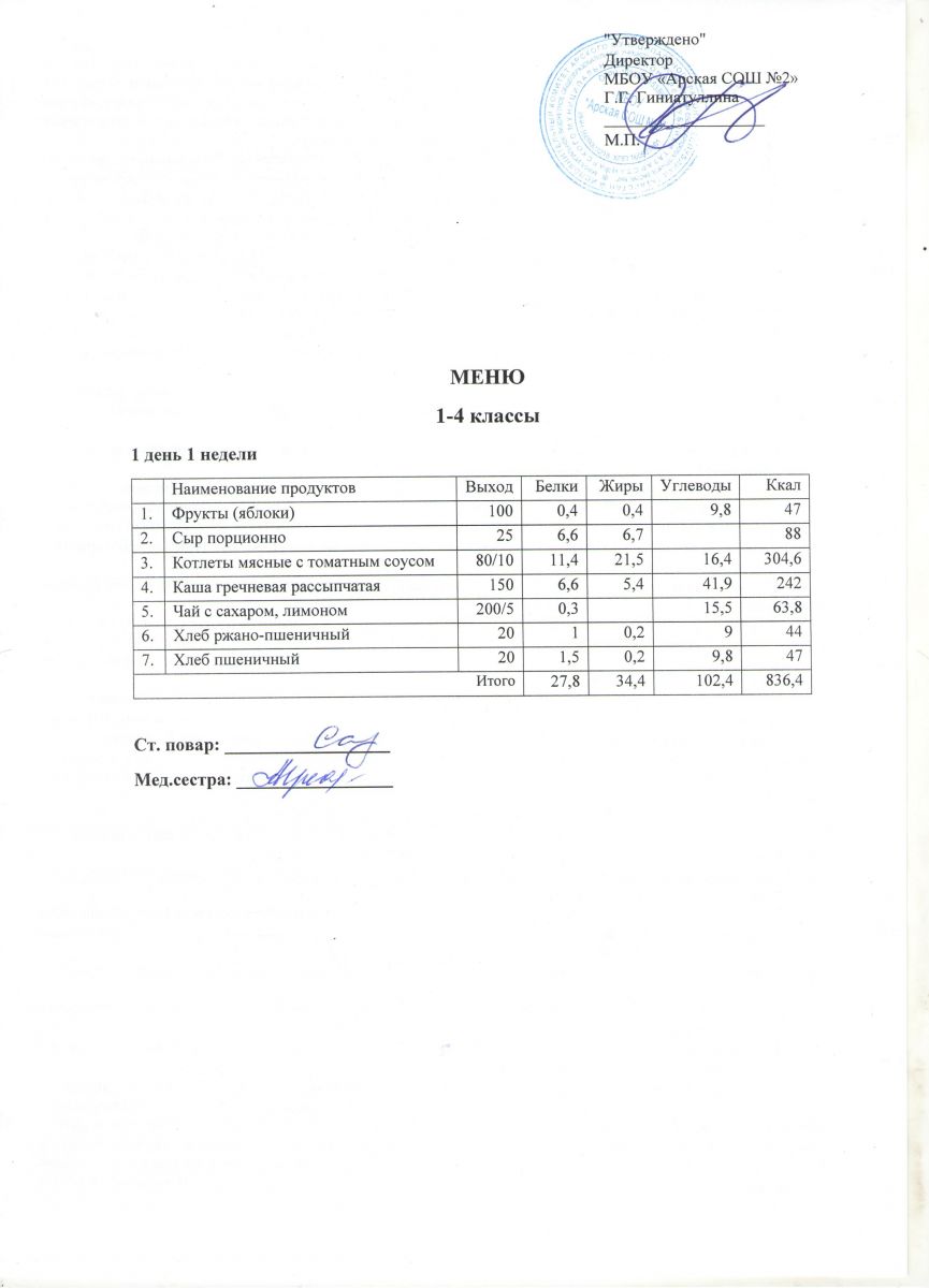 Меню питания на 1 полугодие 2023 - 2024 учебного года (1-4 классы)