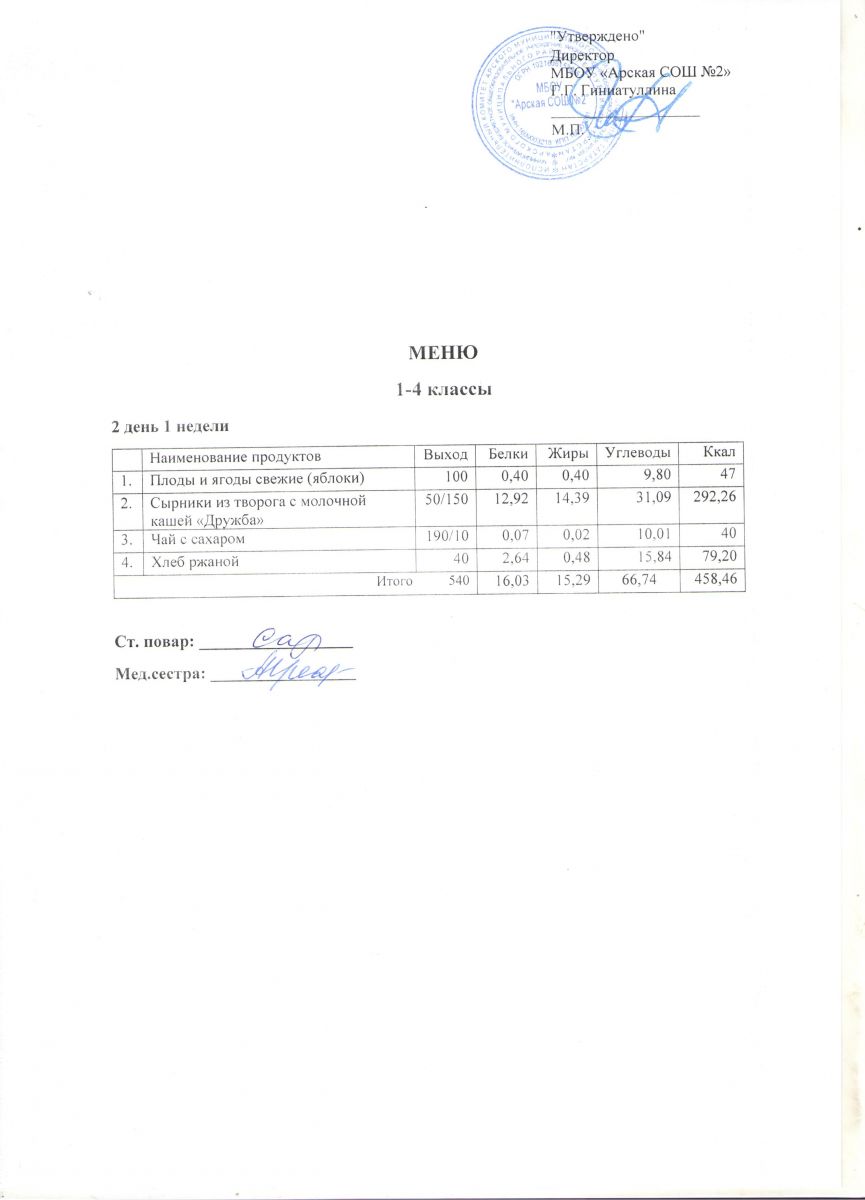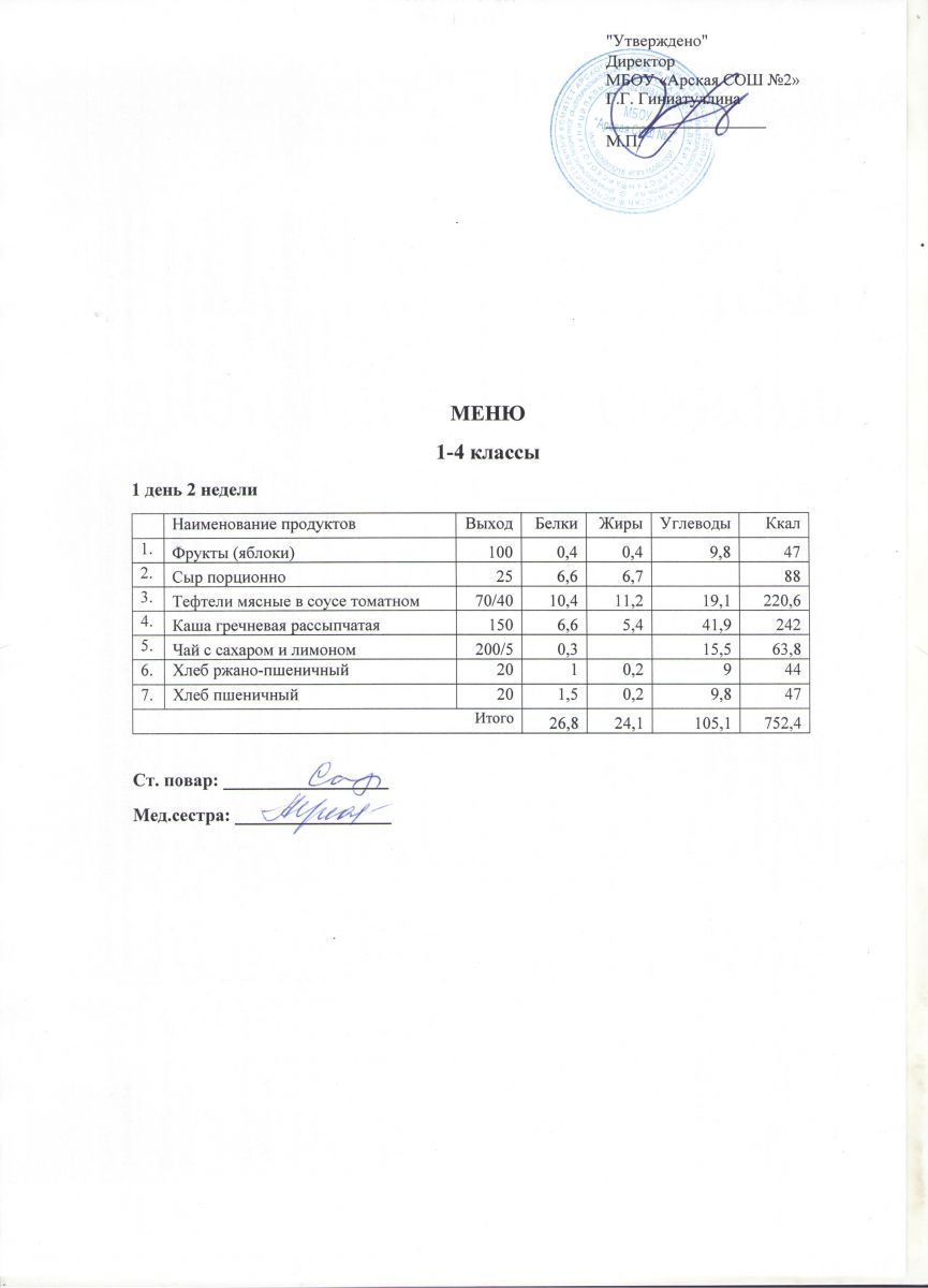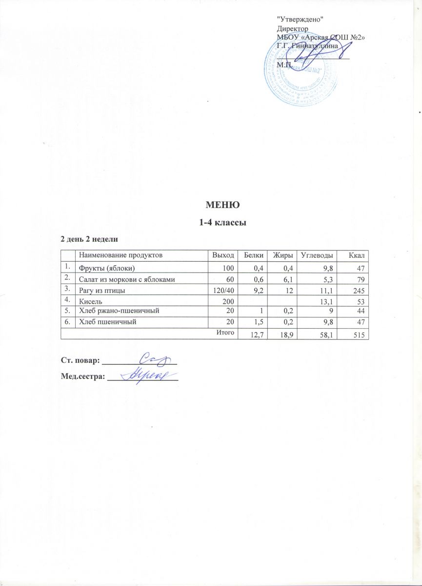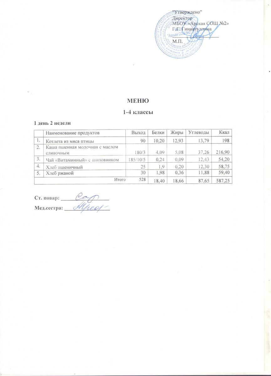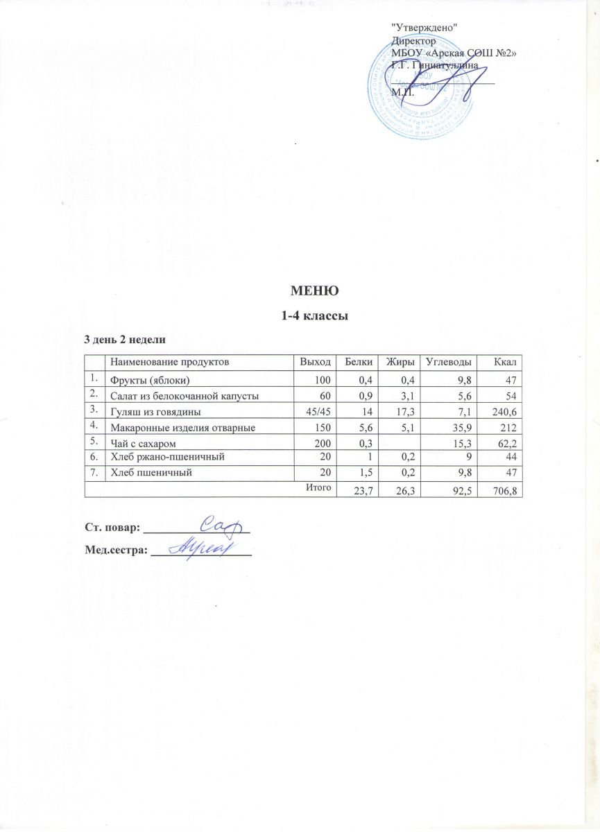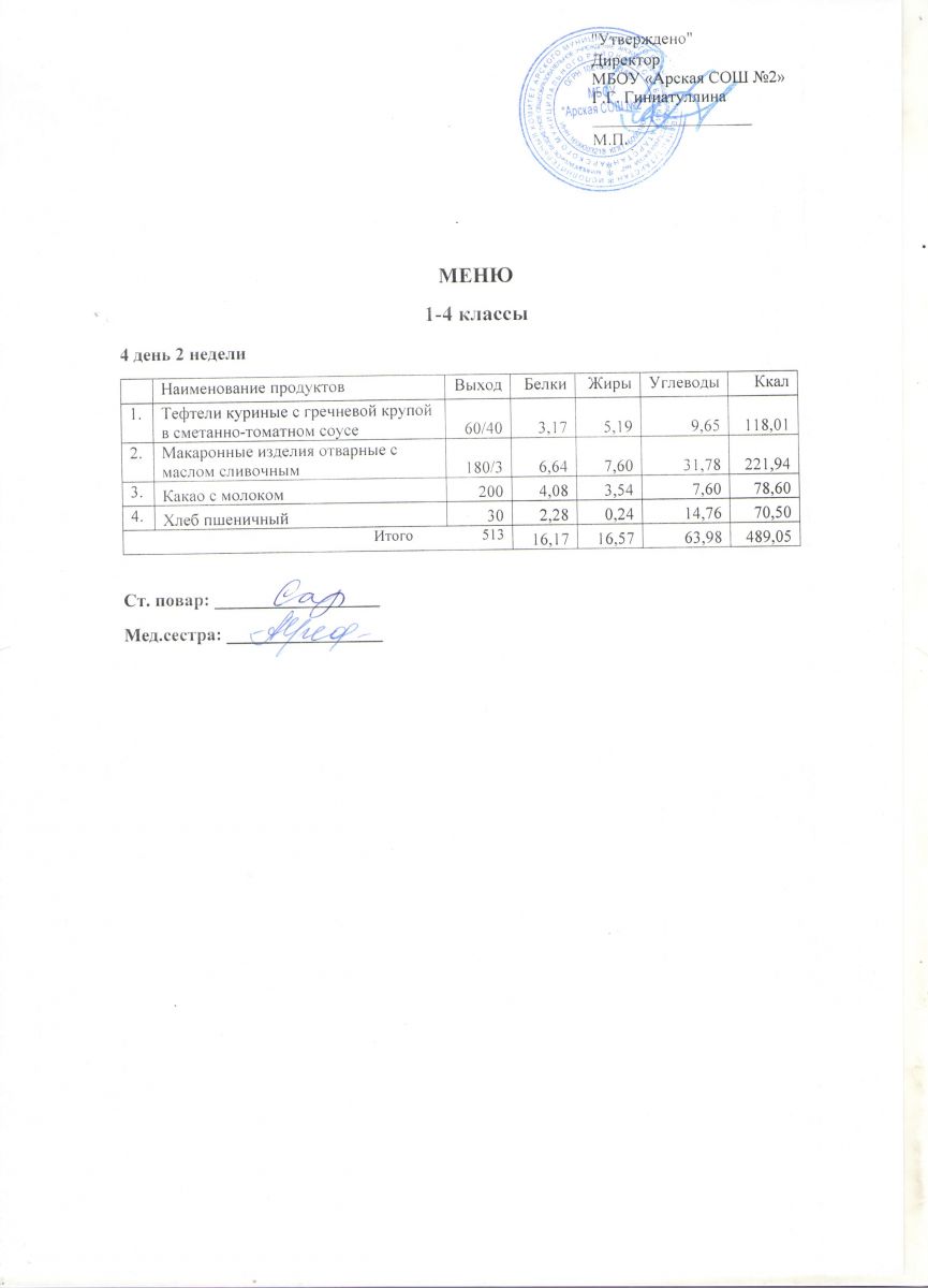 Меню питания на 2 полугодие 2023 - 2024 учебного года (1-4 классы)
