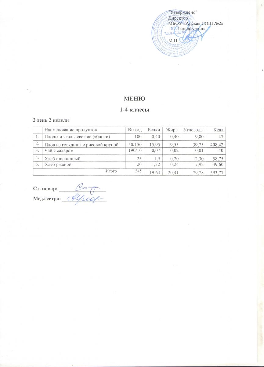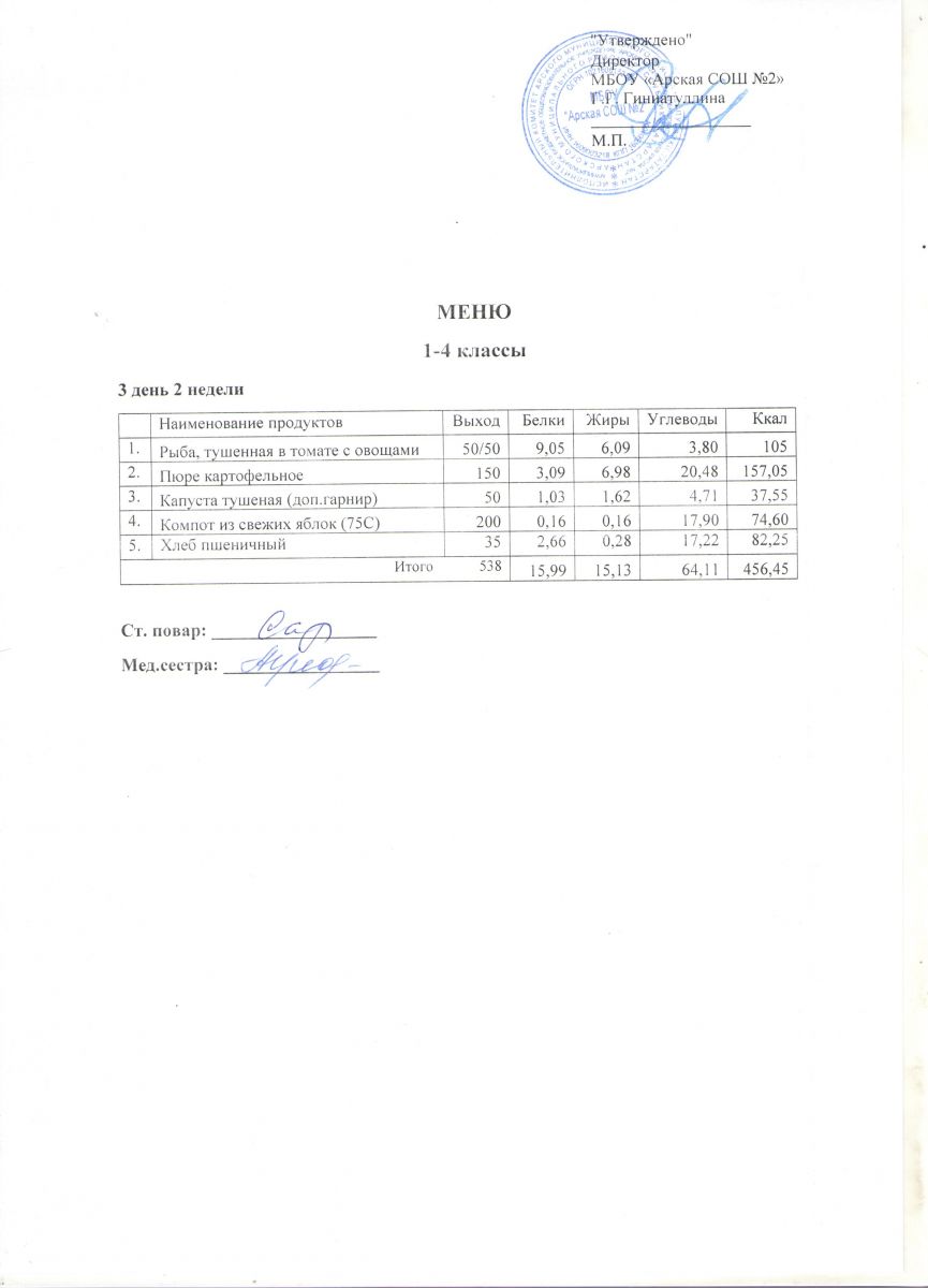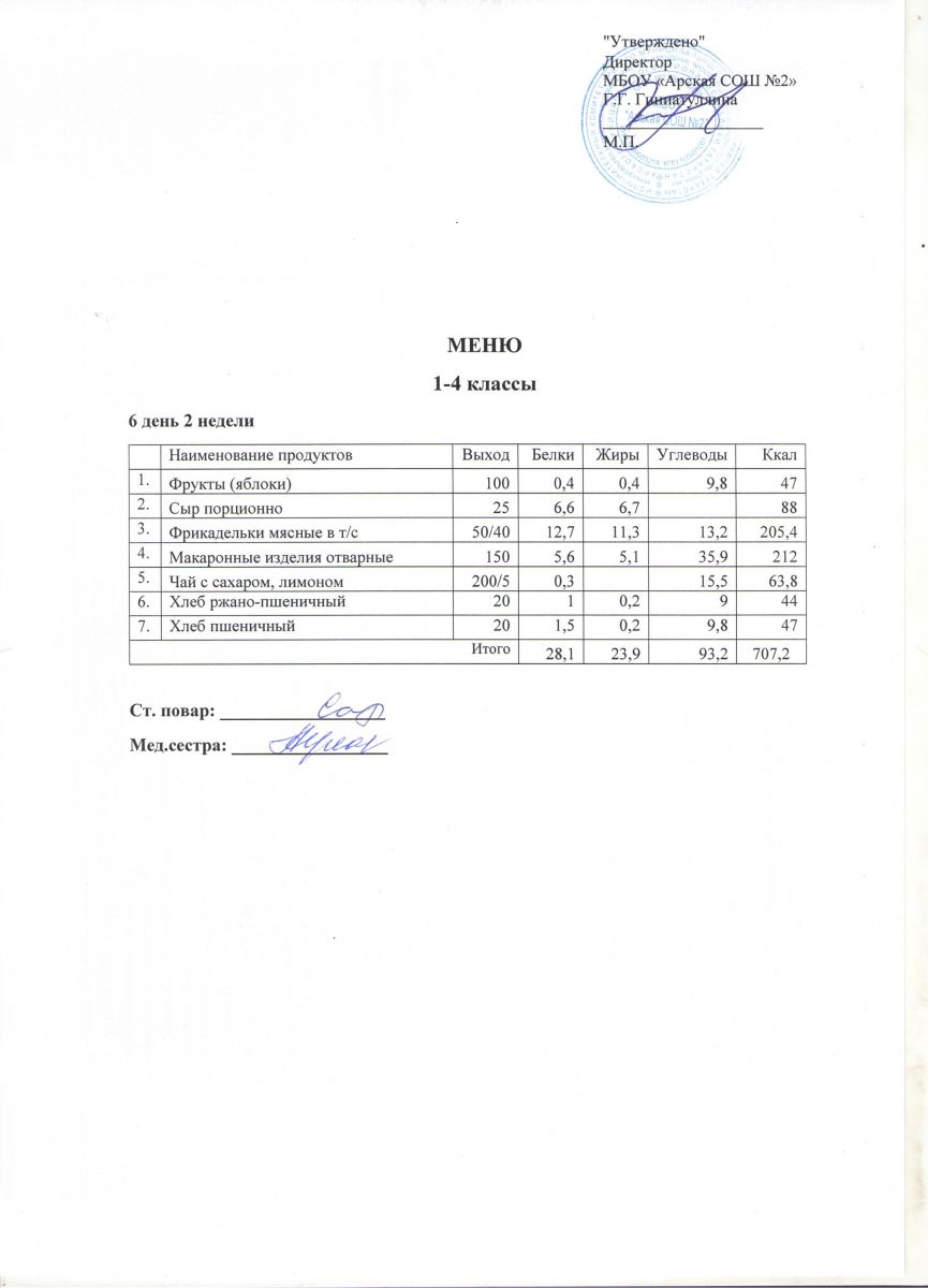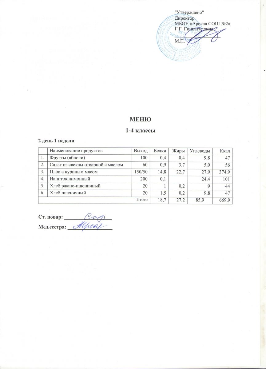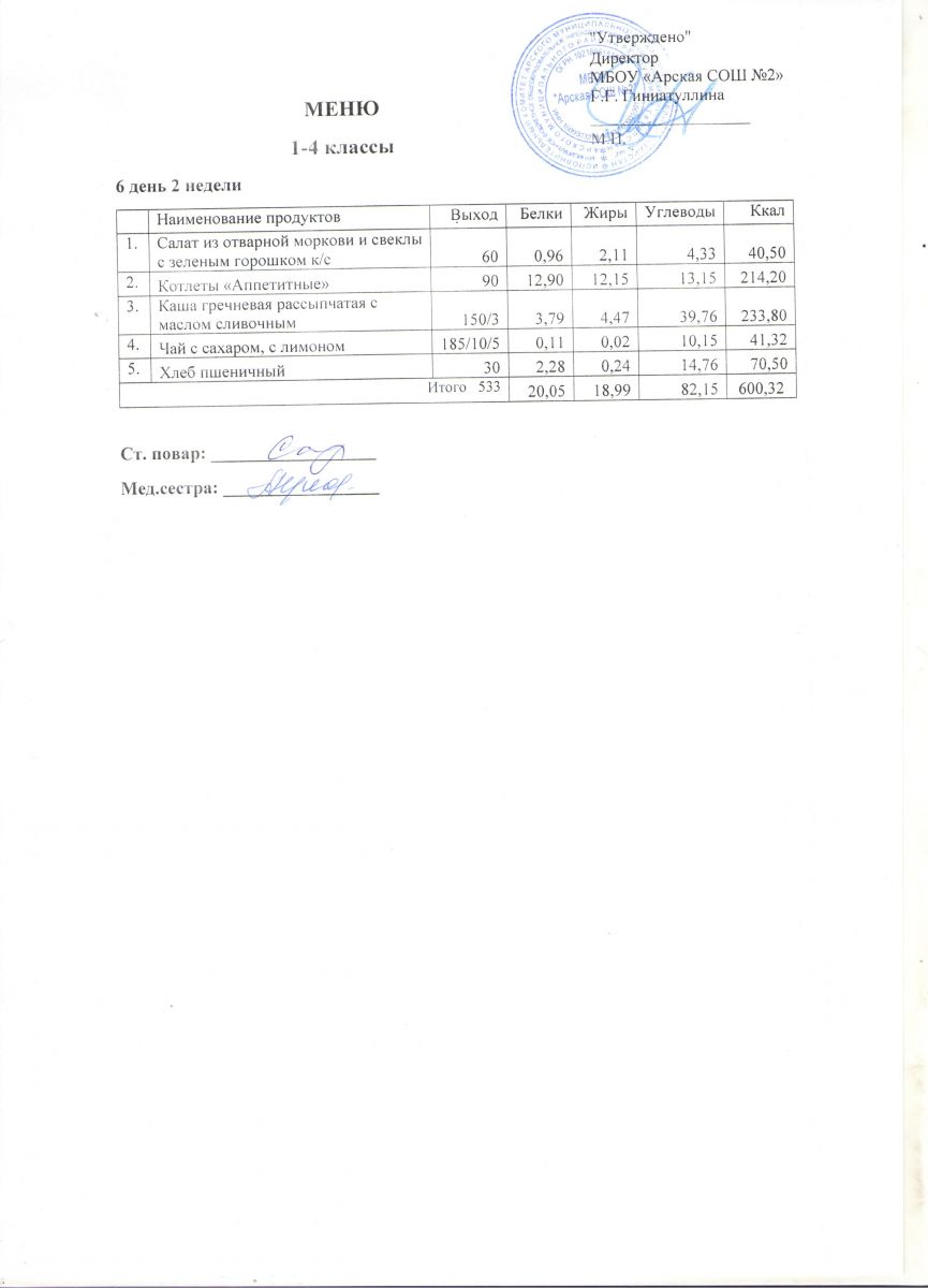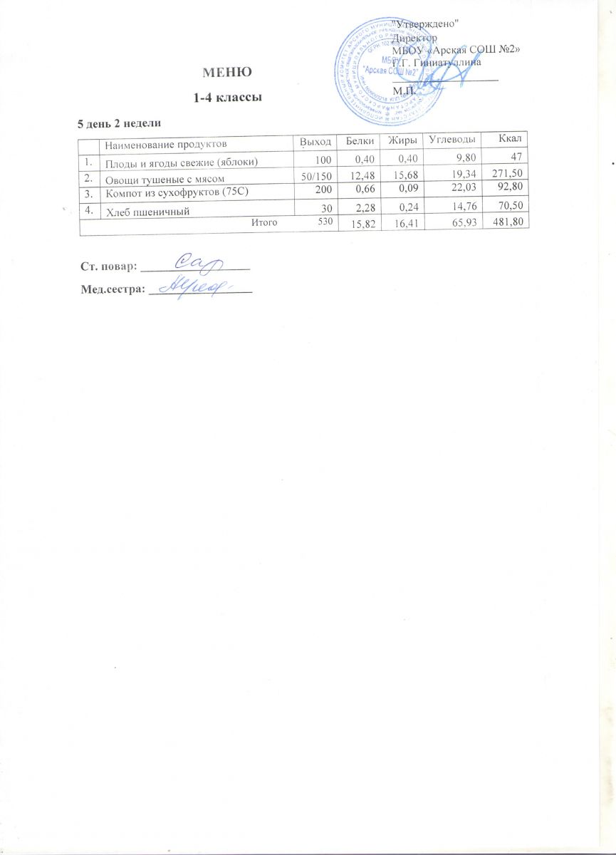 Меню питания на 2 полугодие 2023 - 2024 учебного года (1-4 классы)