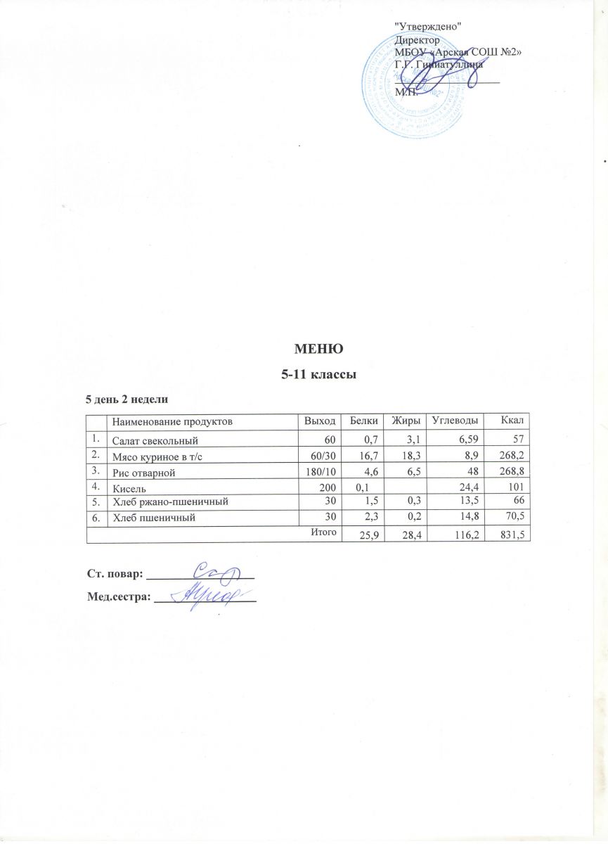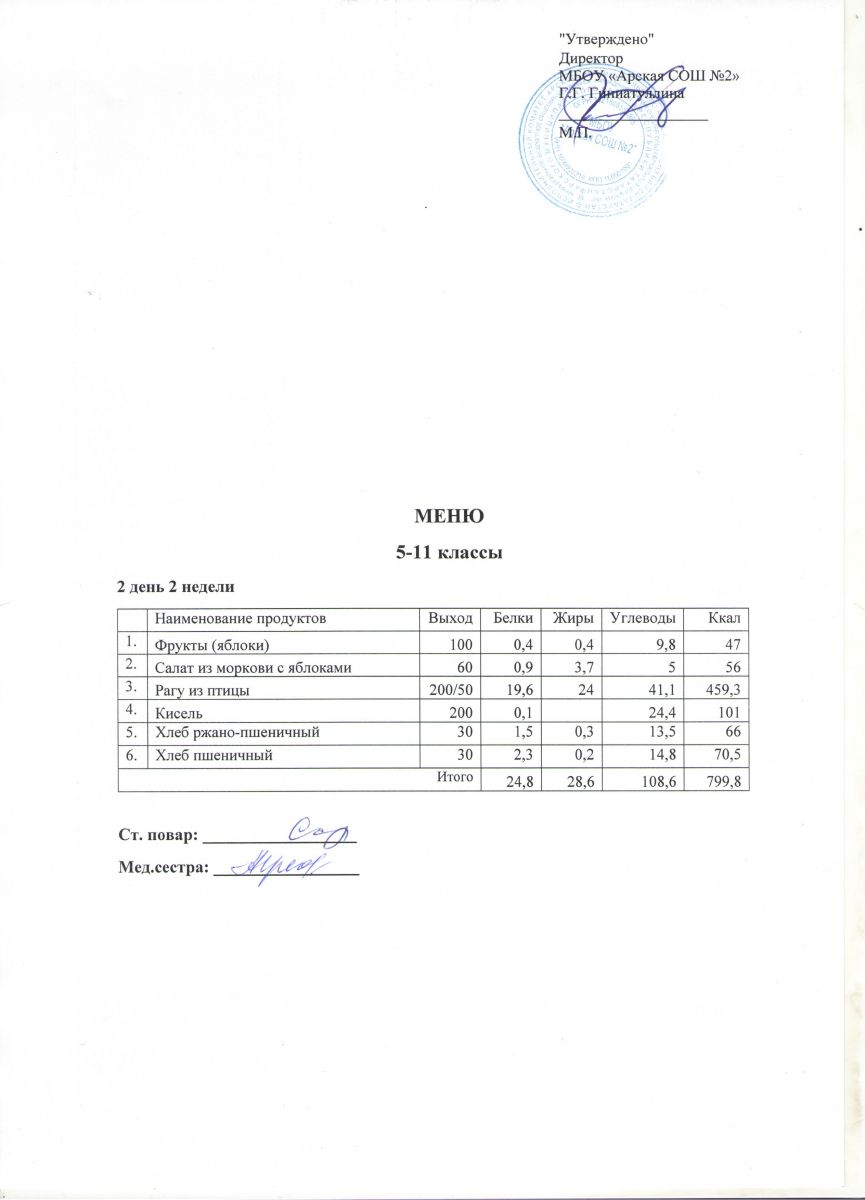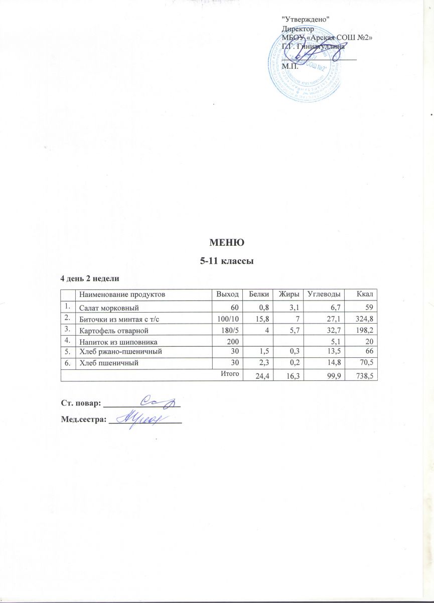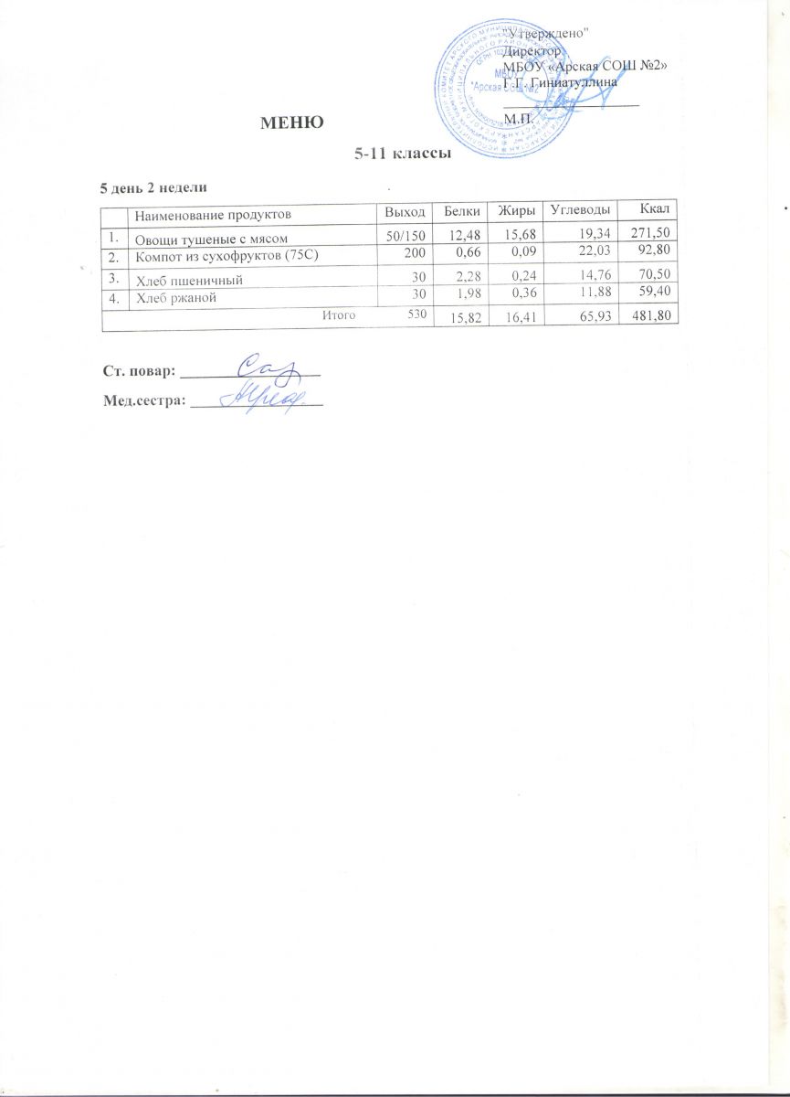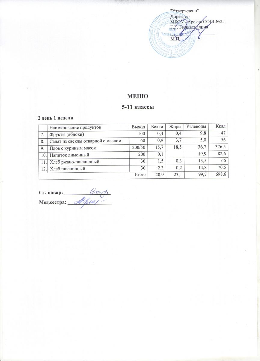Меню питания на 2 полугодие 2023 - 2024 учебного года (5-11 классы)