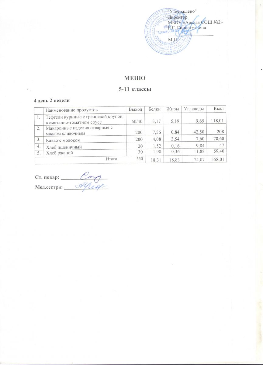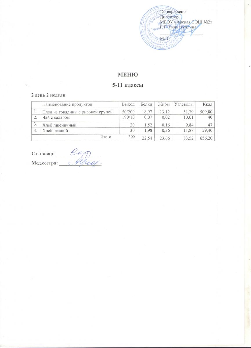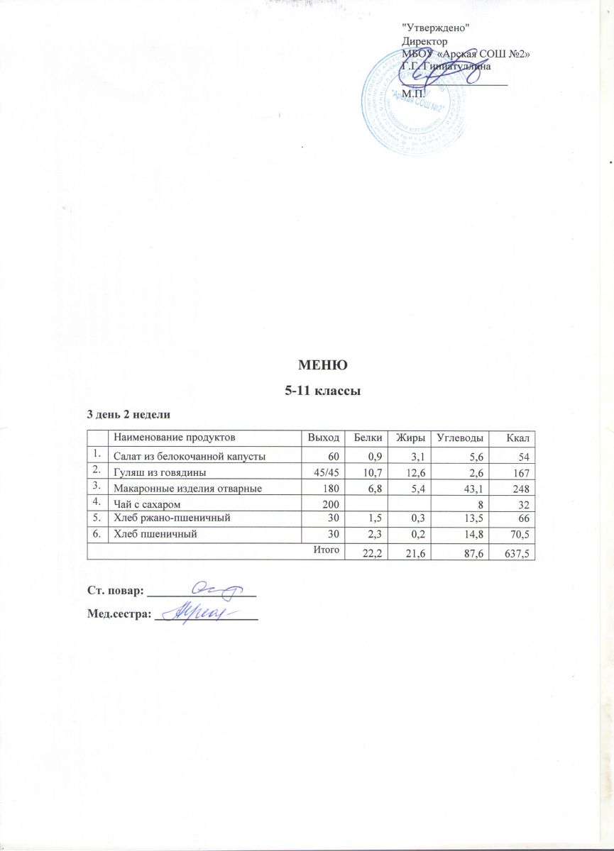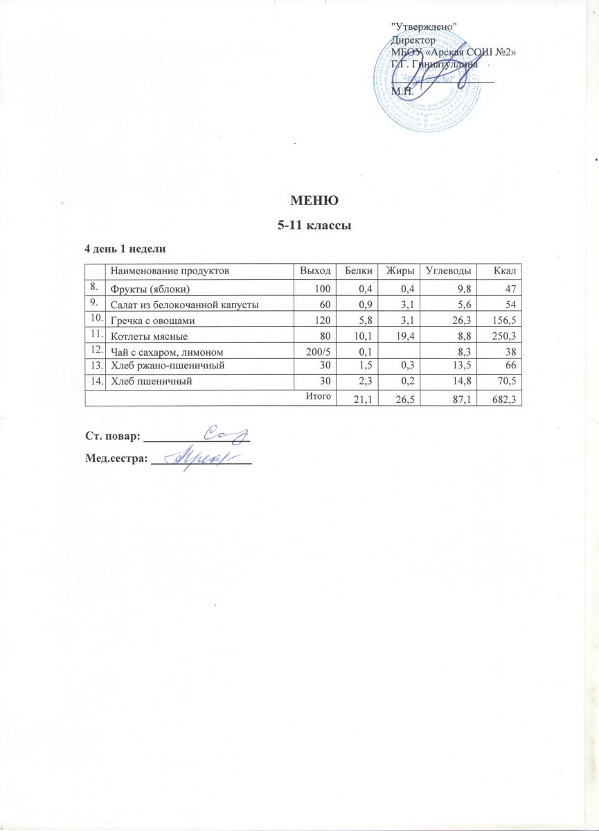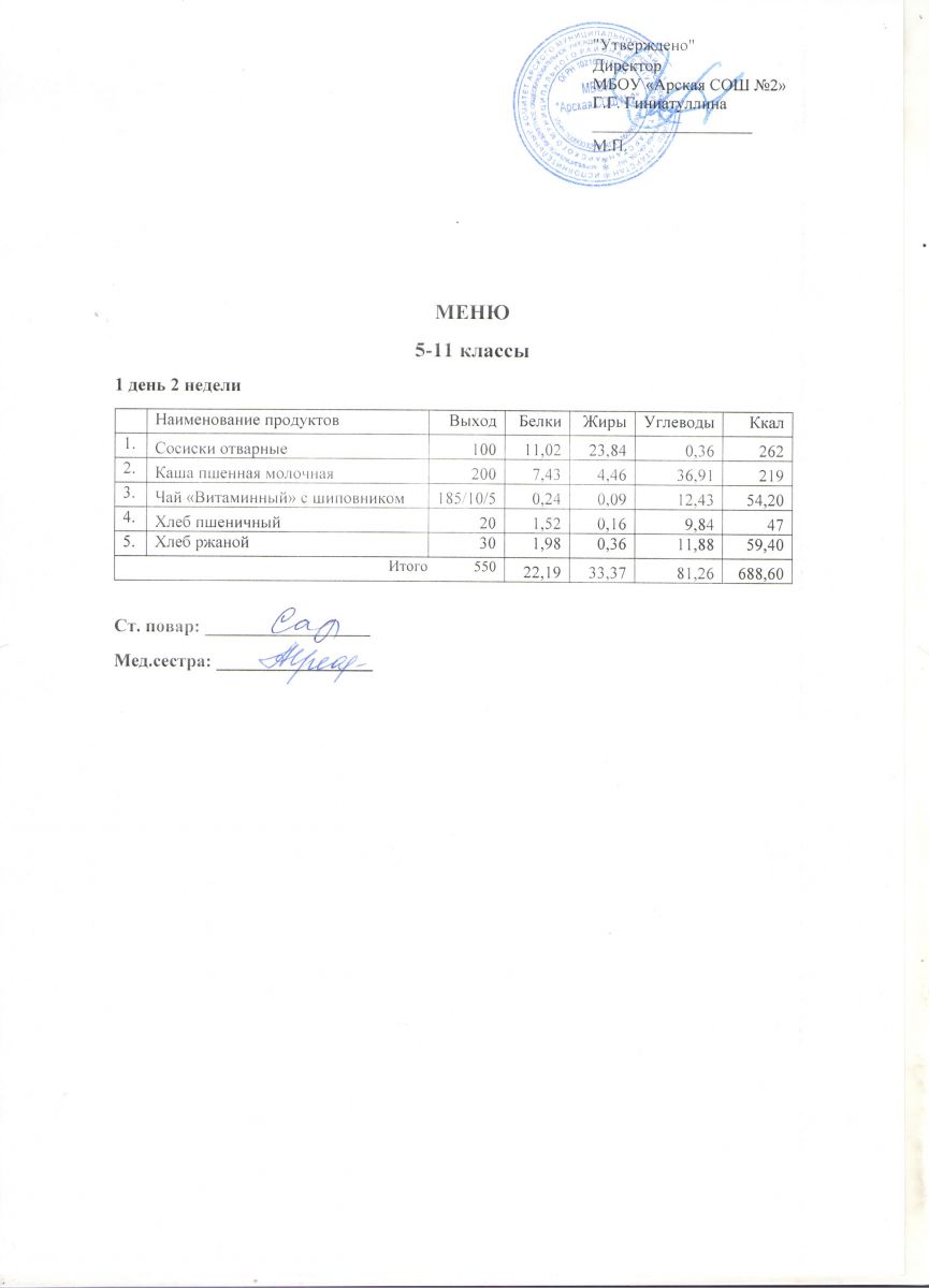 Меню питания на 2 полугодие 2023 - 2024 учебного года (5-11 классы)