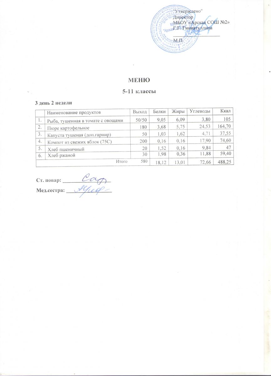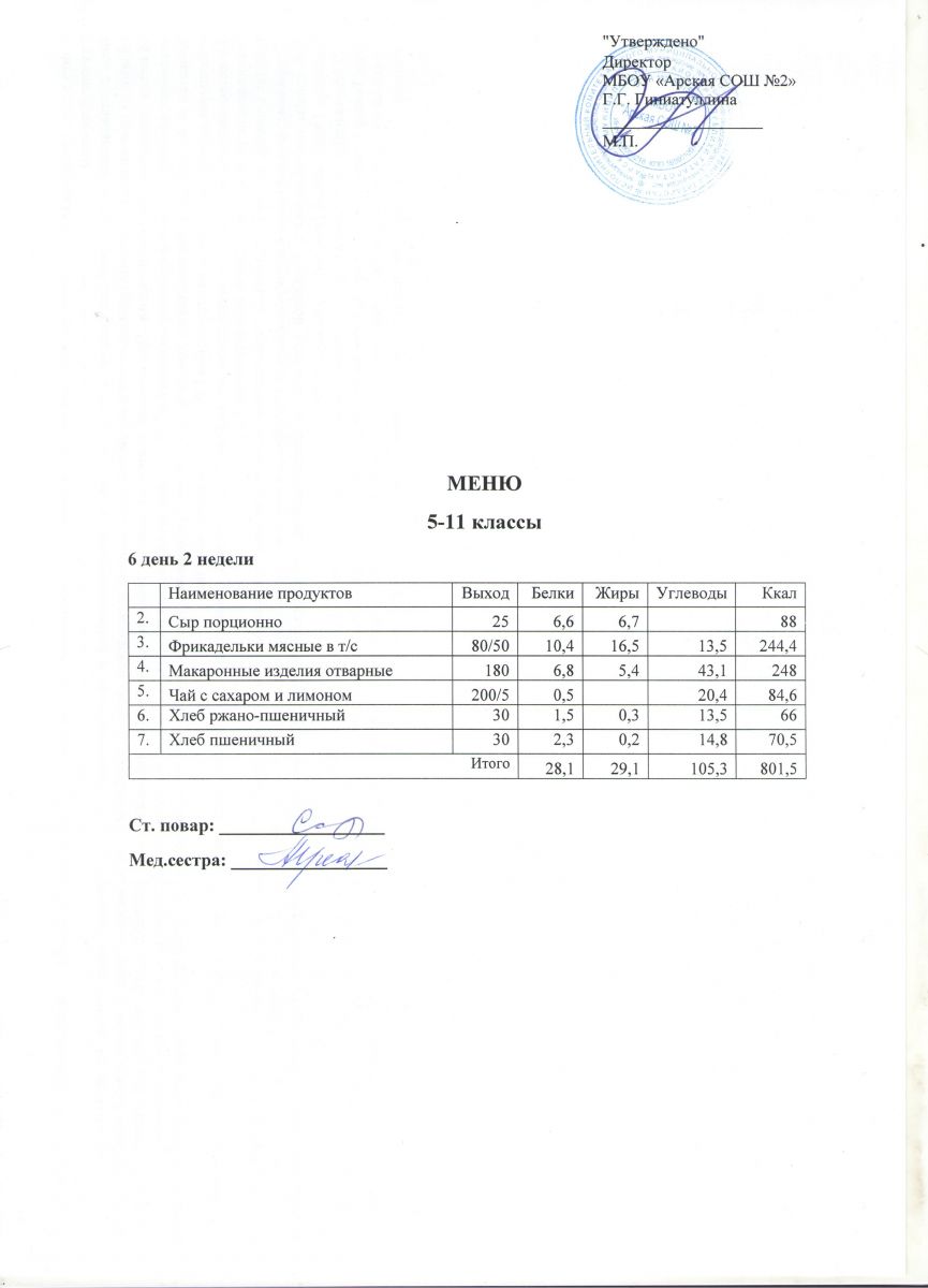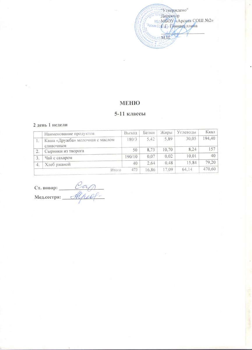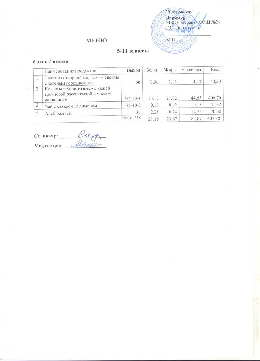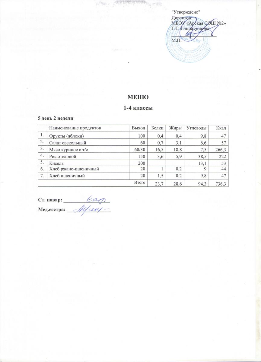 Меню питания на 2 полугодие 2023 - 2024 учебного года (5-11 классы)