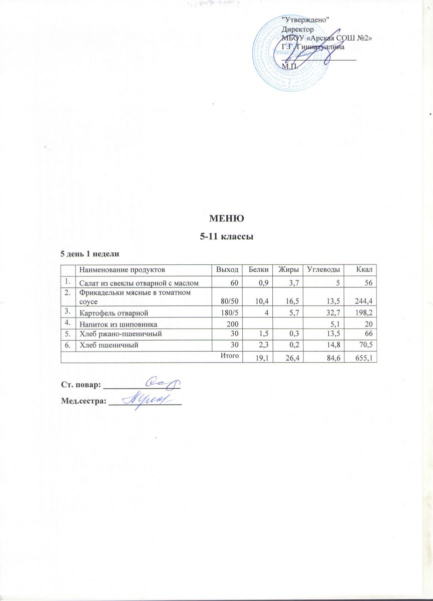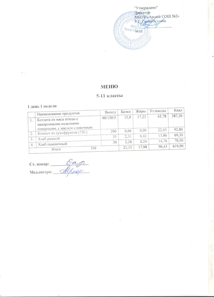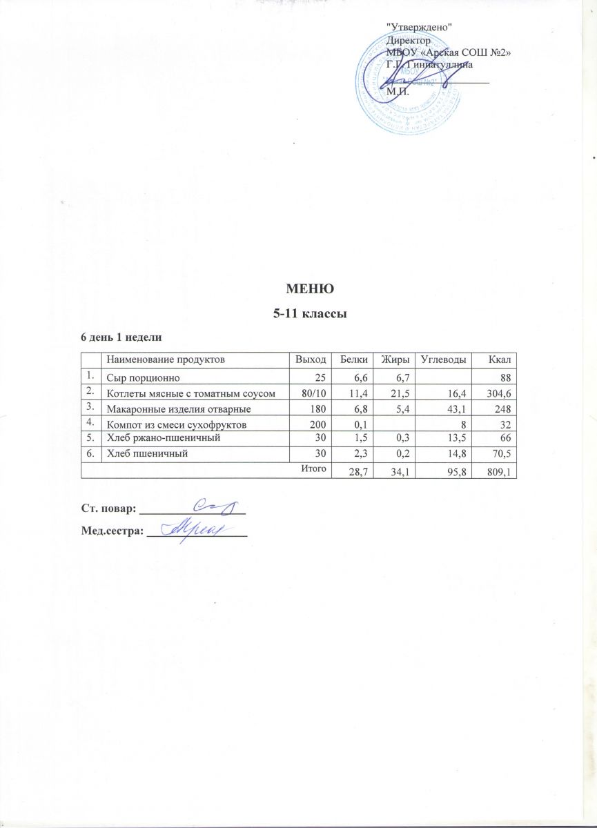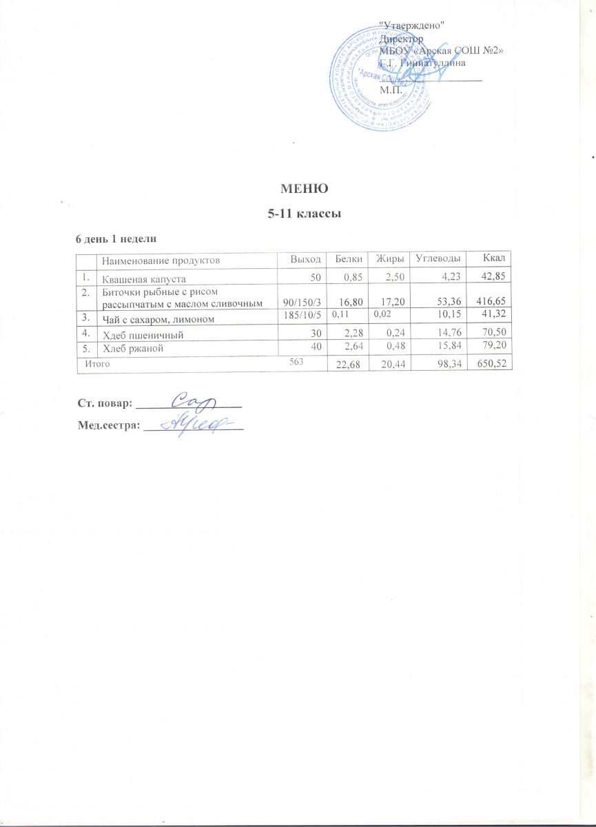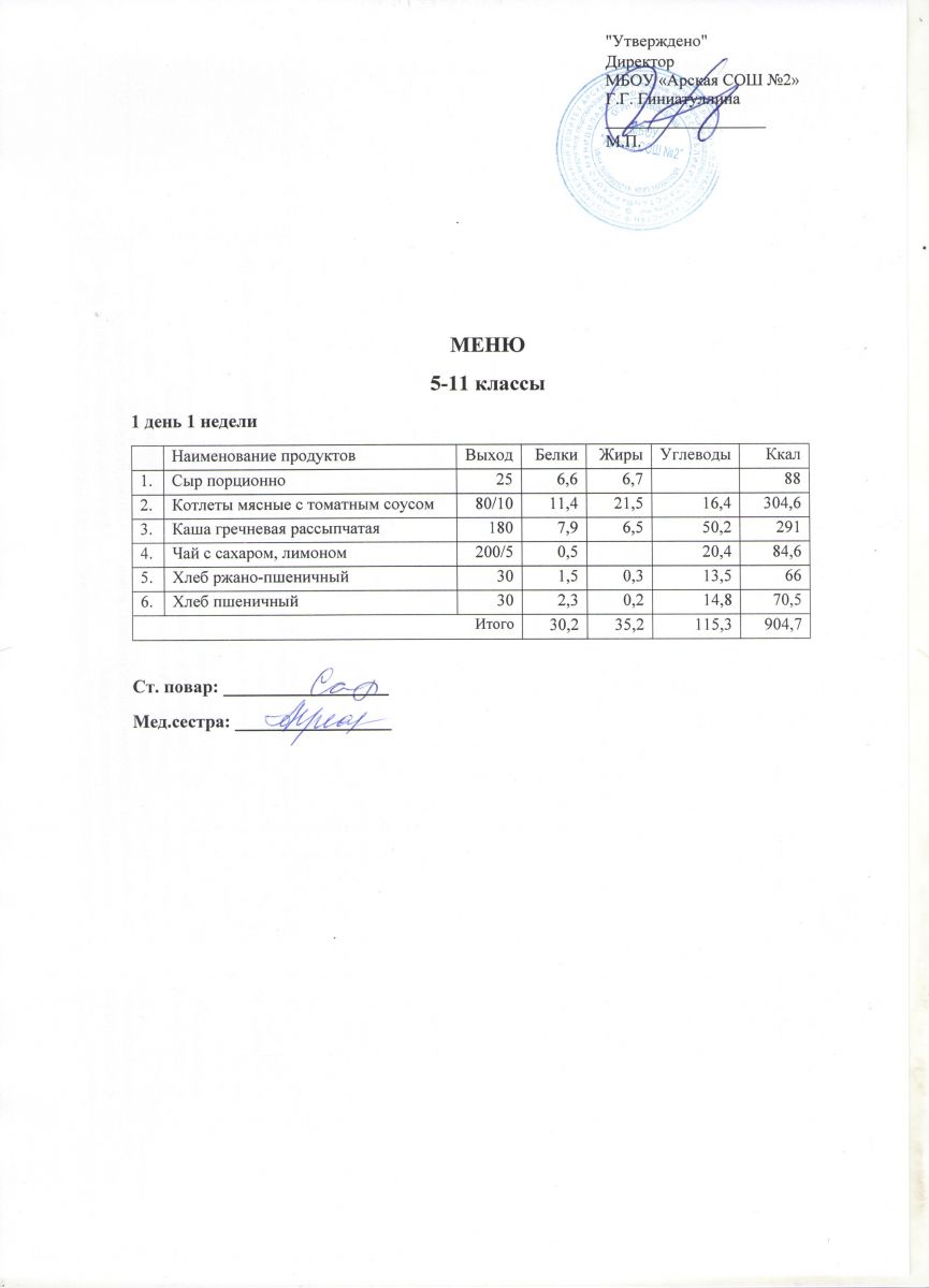 Меню питания на 1 полугодие 2023 - 2024 учебного года (5-11 классы)