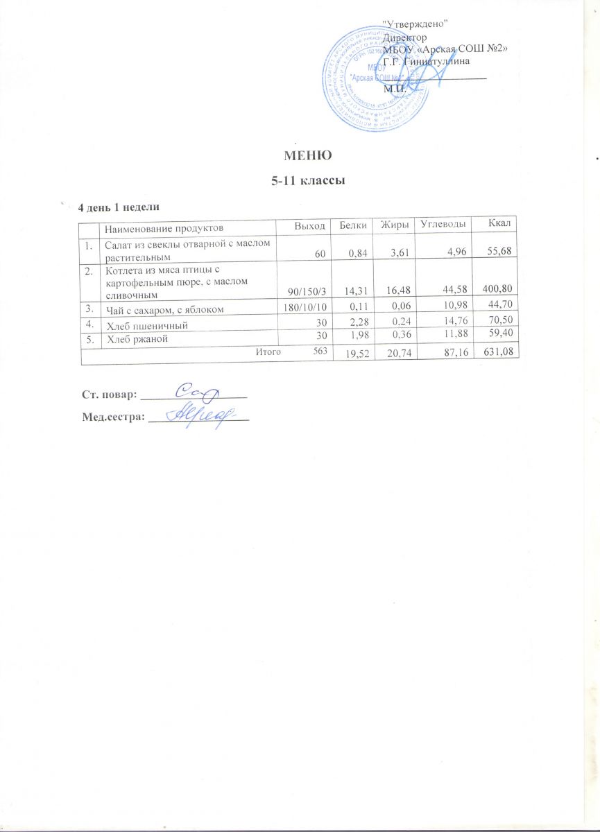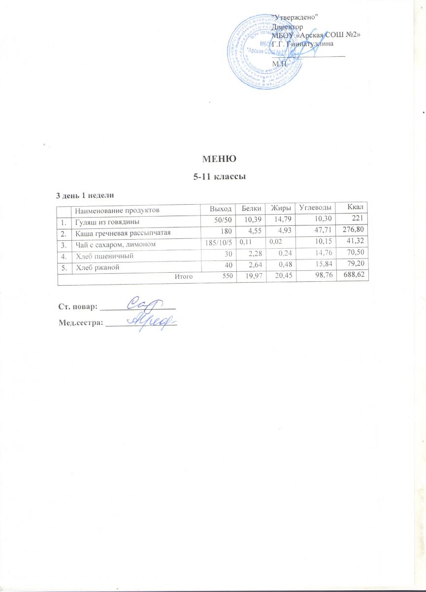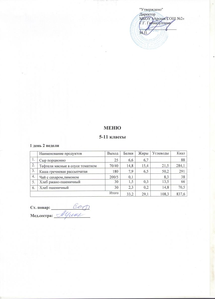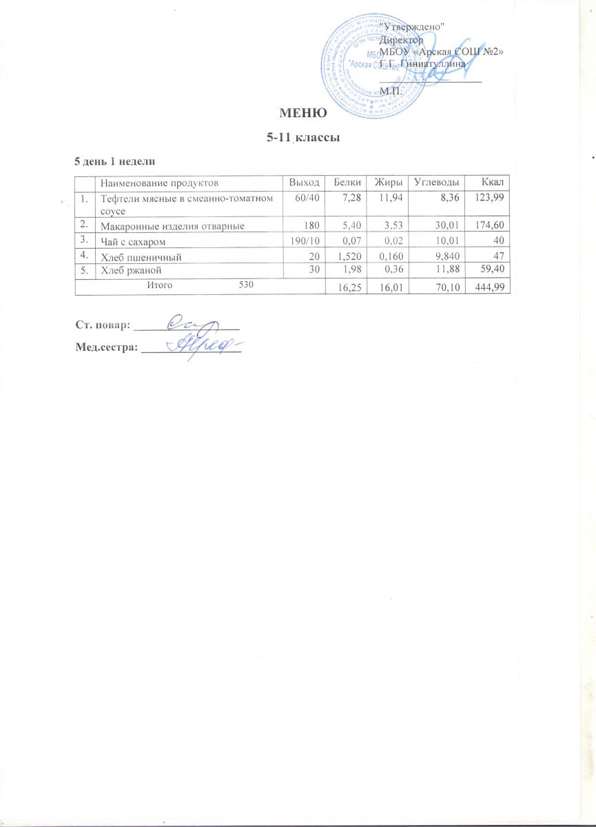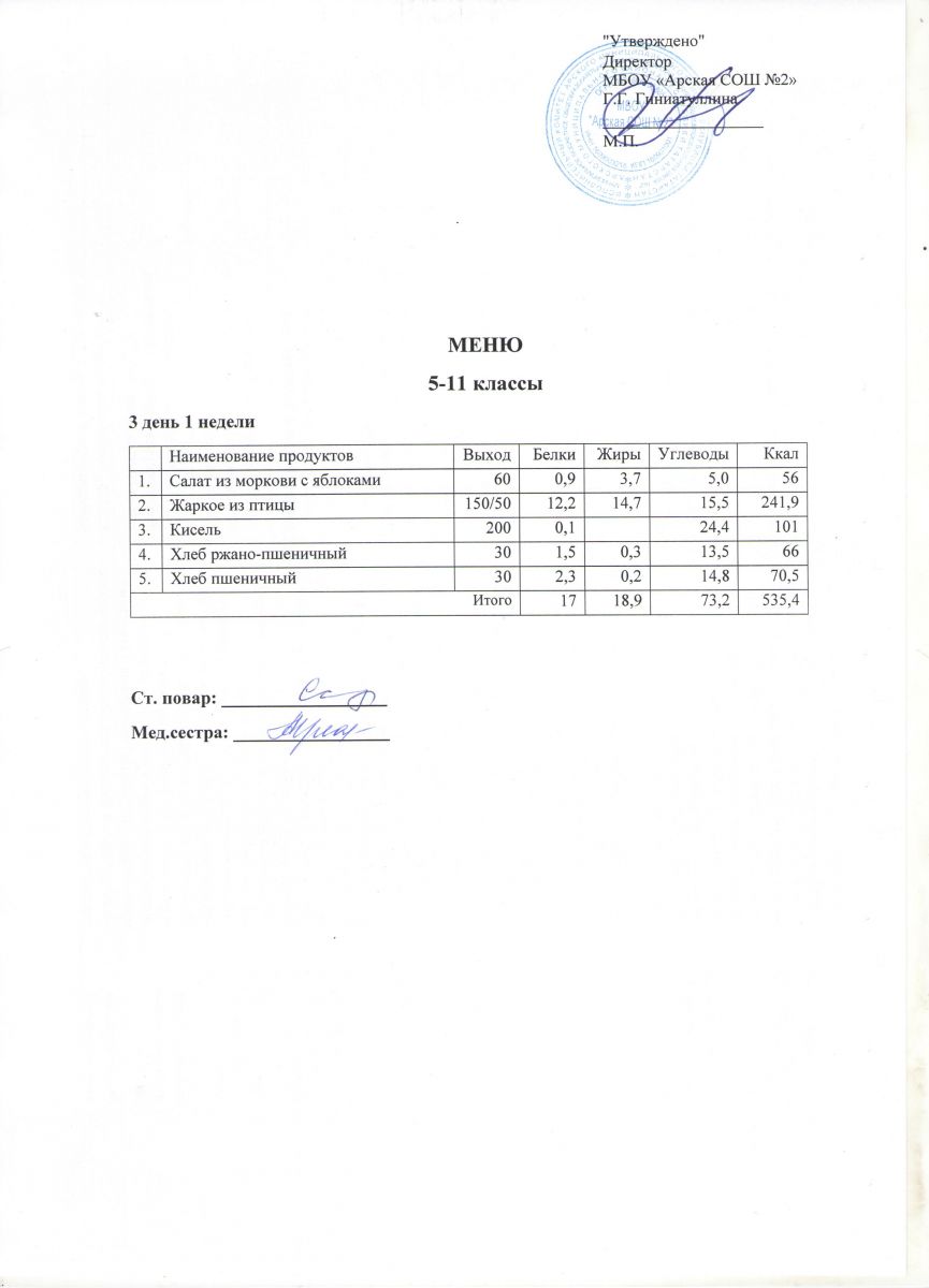 Меню питания на 1 полугодие 2023 - 2024 учебного года (5-11 классы)