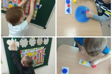 Закрепляем умения различать геометрические фигуры:круг,квадрат,треугольник,повторяем понятия "один", "много", "больше" и "меньше."