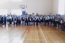 Учащиеся во время школьной линейки хором спели гимн Побуды - песню "День Победы"