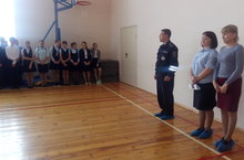 "Экстремизмга каршы балаларның куркынычсызлыгы" айлыгы кысаларында мәктәп линейкасында ГИБДД хезмәткәре Муллагалиев Ф.И. һәм Арча районы буенча ПДН ОМВД инспекторы, полиция инспекторы Э.С. Усманова катнашты. Алар балаларга юлда сак йөрү кагыйдәләрен, үзеңне иҗтимагый урында тоту кагыйдәләрен искә төшерде.