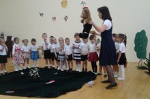 Уртанчылар төркемендә музыка белгече җитәкчелегендә күңел ачу чарасы оештырылды. Балалар тылсымлы урманга сәяхәт кылдылар. Куянга нәни Машаны эзләп табарга булыштылар. Юлда барганда җырладылар, биеделәр, төрле каршылыклар аша уздылар. Чара инглиз телендә "Hello" җыры белән тәмамланды .