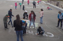 Бүген бездә асфальтка рәсем ясау көне.Отрядларга төрле темалар бирелде. Балалар бик тырышып үз темаларын рәсем итеп ясадылар.