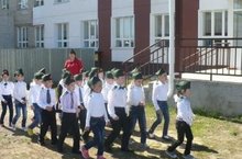 На линейке прошло принятие первоклассников в детскую организацию "Карлыгач"