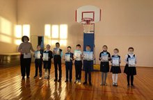 Еженедельная школьная линейка.Награждение побидетелей разных конкурсов и олимпиад.