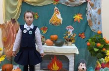 "Яшь хәбәрче" һәм "Конферансье" түгәрәгенә йөрүче укучылар алтын көз турында шигырьләр сөйлиләр.