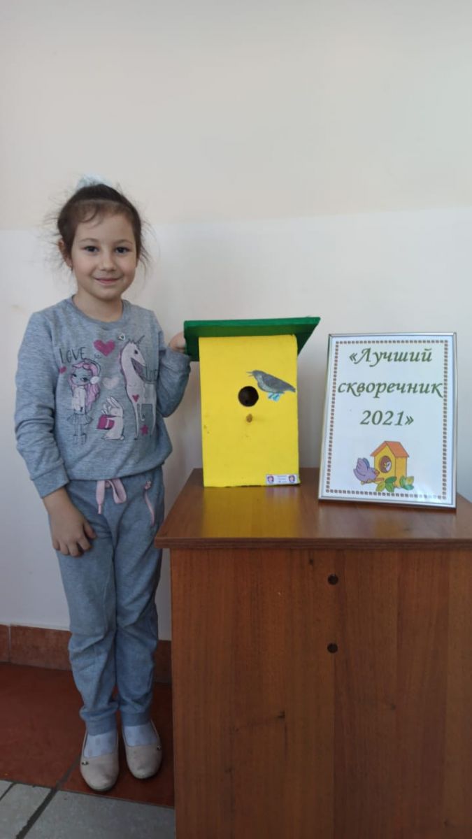 Ученики нашей школы активно участвуют в различных конкурсах, один из таких районный конкурс "Лучший скворечник - 2021", целью которого является привлечение внимания детей и подростков к проблеме сохранения окружающей среды. работа ученицы 1 В класса Каюмовой Гульназ.