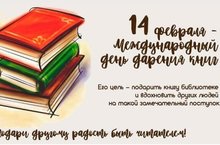 14 февраля - Международный день дарения книг. Приглашаем вас принять участие во Всероссийской акции "Дарите книги с любовью! Каждая подаренная вами книга обязательно найдет своего читателя! Все желающие могут принести книги в школьную библиотеку.