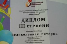 Учащиеся 2 А класса (классный руководитель Шакирова Ф.Ф.) "Великолепная пятерка" участвовали в Республиканском командном конкурсе для школьников 1-5 классов " Интелект" и были награждены ДИПЛОМОМ III степени.