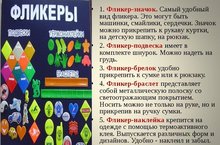 Фликер – яктылыкны кире кайтаручы элемент (яктылык җитәрлек булмаган шартларда күренеп торуны тәэмин итүче яктылык кайтаргыч). Фликер җәяүленең тапталу куркынычын 6-8 тапкыр киметә!