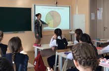 "Укучының сәламәт туклануы" халыкара акциясе. Мәктәп укучылары үзидарәсе вәкилләре 5 В сыйныф укучылары белән дөрес туклану һәм сәламәт яшәү рәвеше серләре белән уртаклаштылар. Балалар актив катнаштылар һәм үзләрен кызыксындырган сорауларын бирделәр. Дәрес кызыклы һәм файдалы узды.