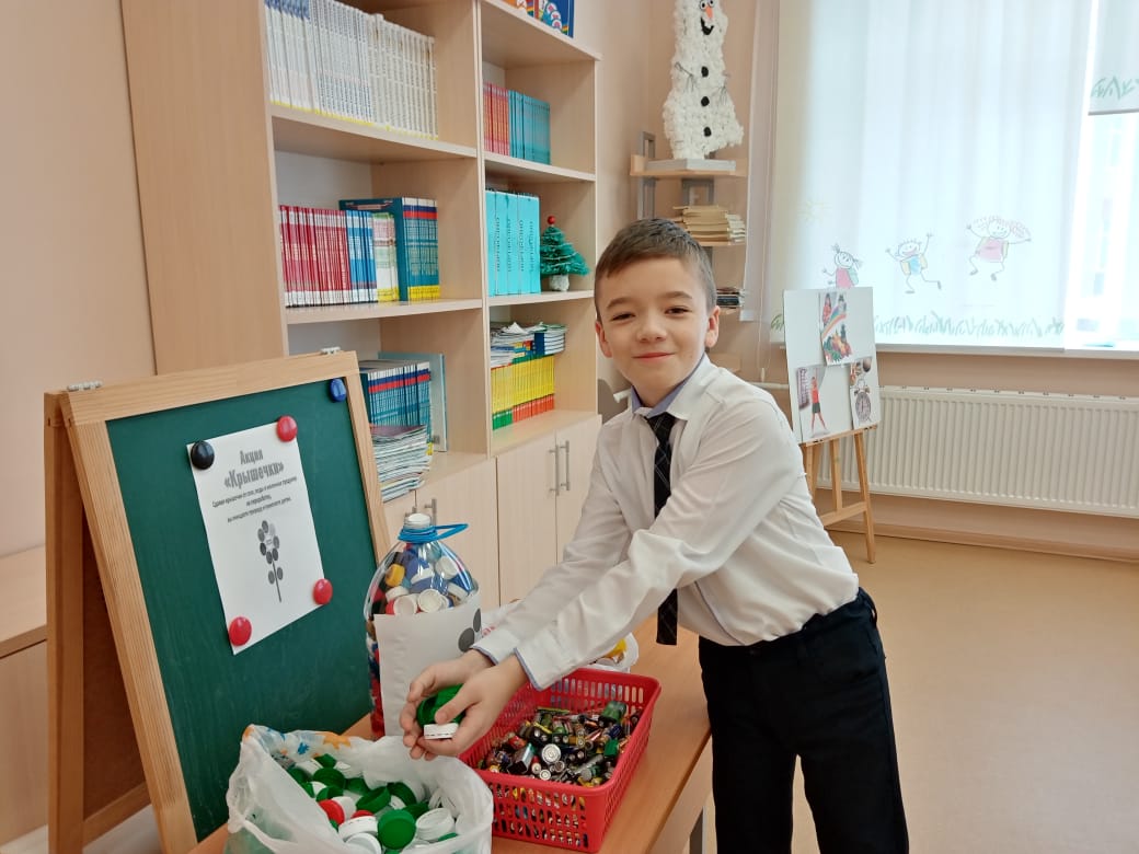 4 нче Б сыйныфы укучылары да көнкүреш калдыкларын жыюда катнаша.